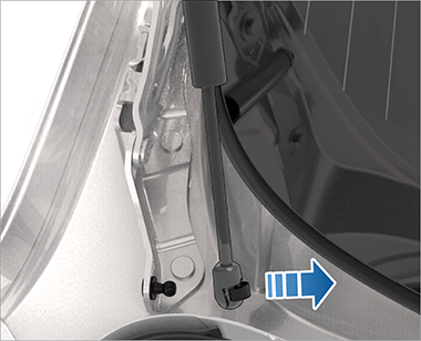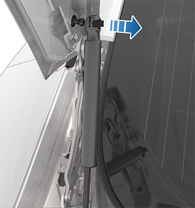 使用饰板工具松开将后备箱支柱底端连接到车辆铰链的夹具,然后释放支柱。