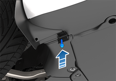 - 将挡泥板放置到轮拱内衬和门槛板盖上,然后紧固推拉式夹子 (x2)。