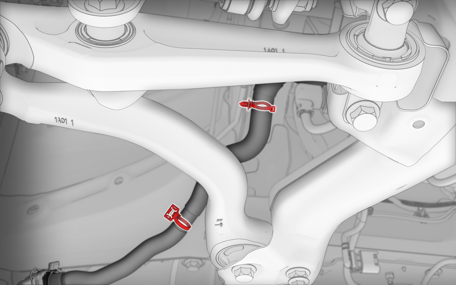 - 连接动力总成供液管并塞住软管两端,然后将动力总成供液软管安装到车身上。