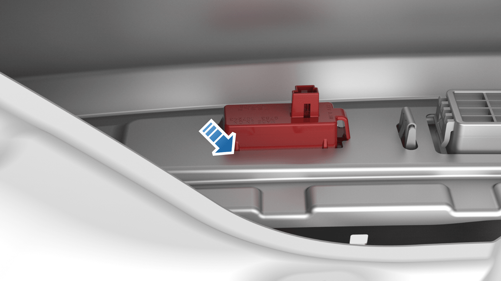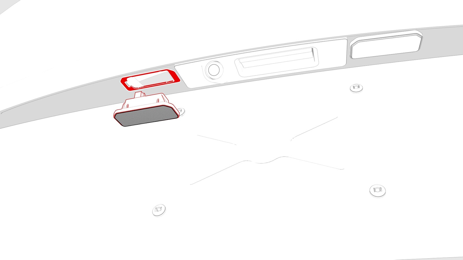 - 将车牌灯向车辆右侧推以压下夹子,然后压下车牌灯另一侧的夹子以将其拆下。