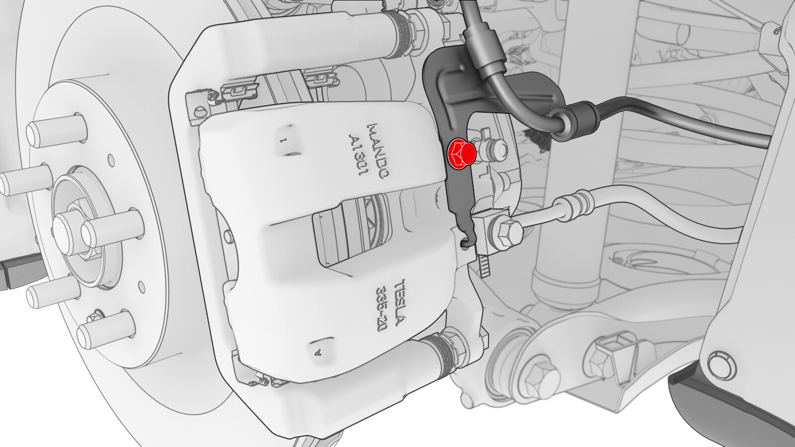 | 将左后电子驻车制动 (EPB) 线束支架固定到左后制动钳的螺栓 |