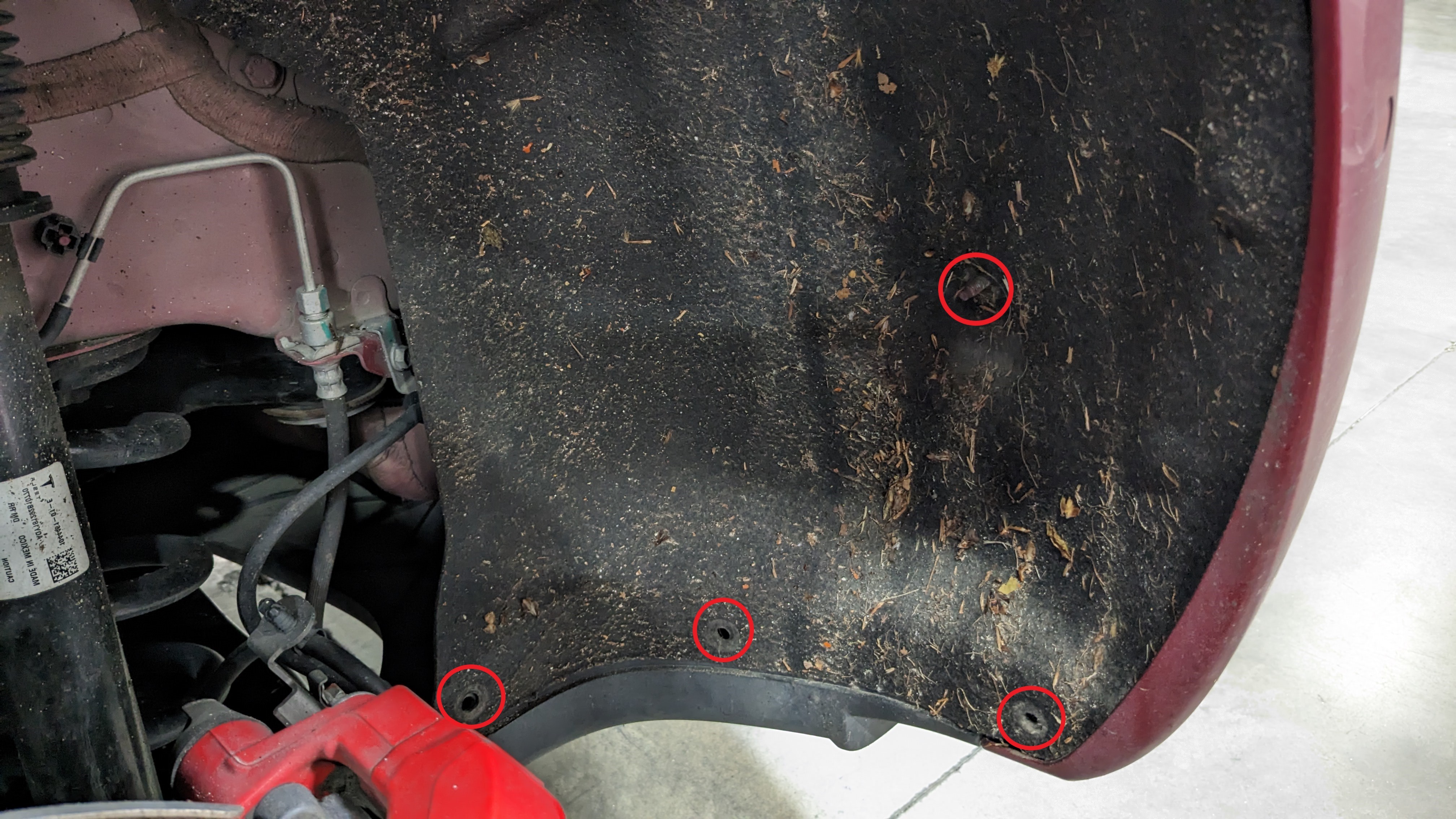 - 拆下夹子 (x3),推按将 LH 后轮拱内衬固定到车辆的螺母,然后提起内衬以便操作线束。