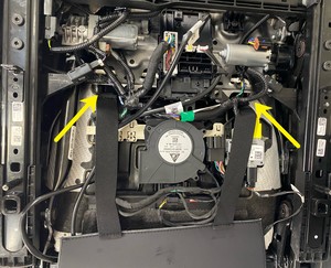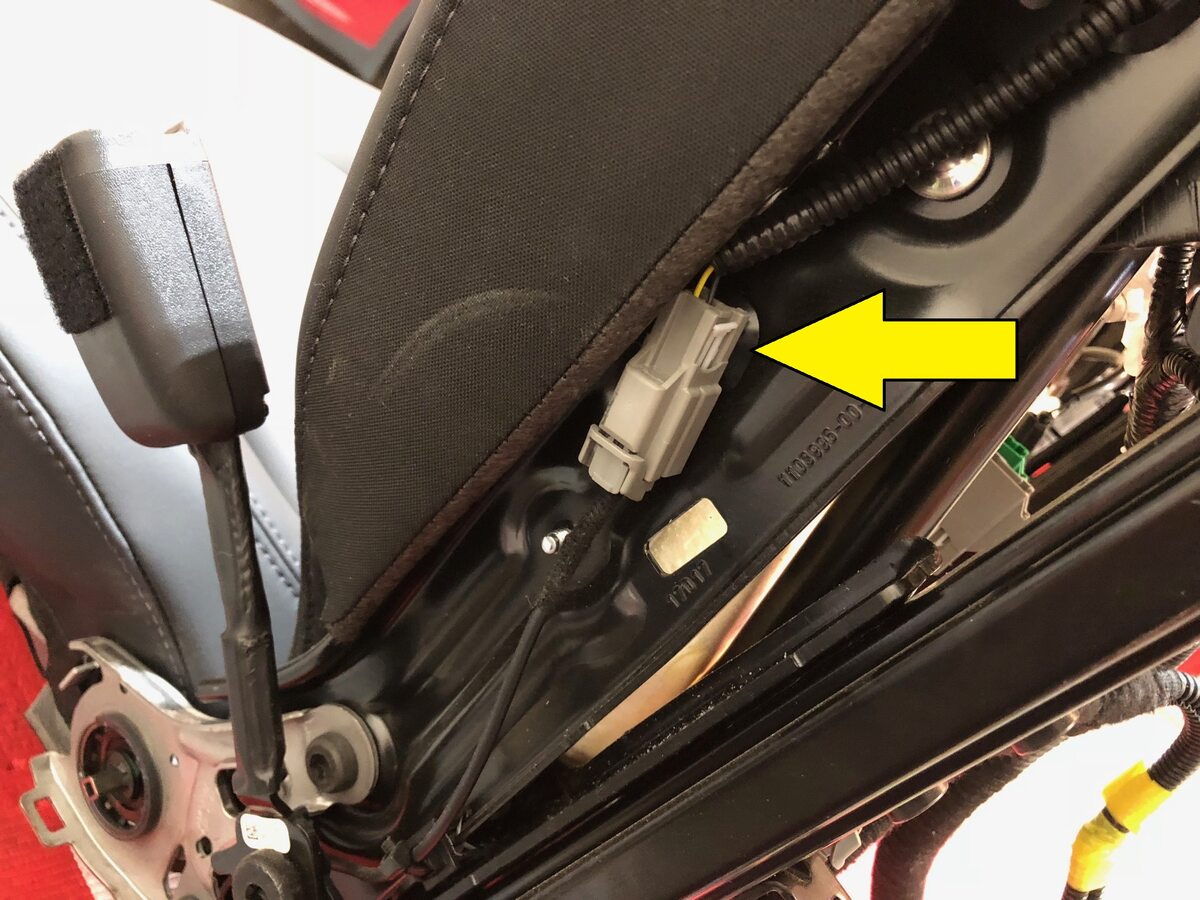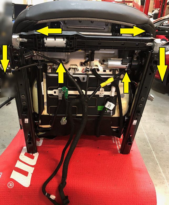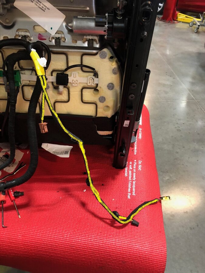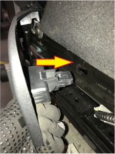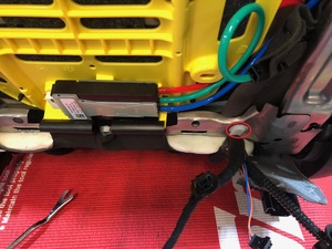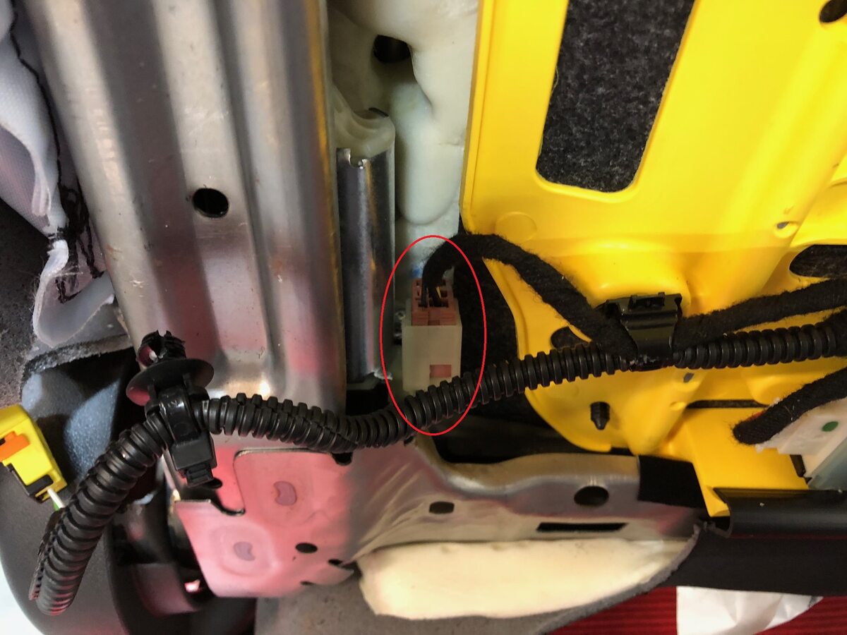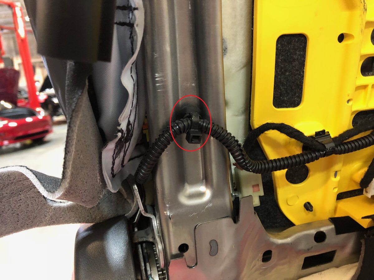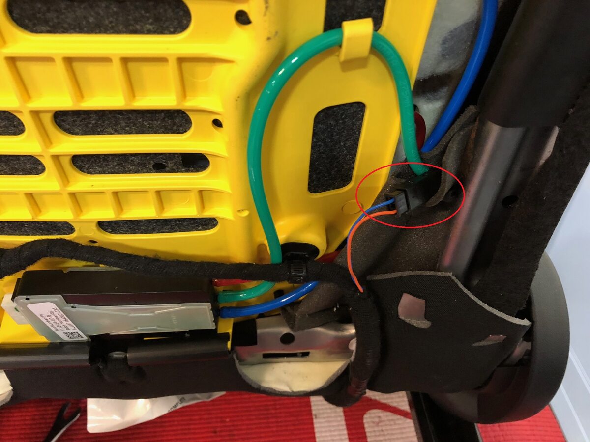 注从座椅倾斜电机后面将线束支腿从座椅底部移开
