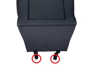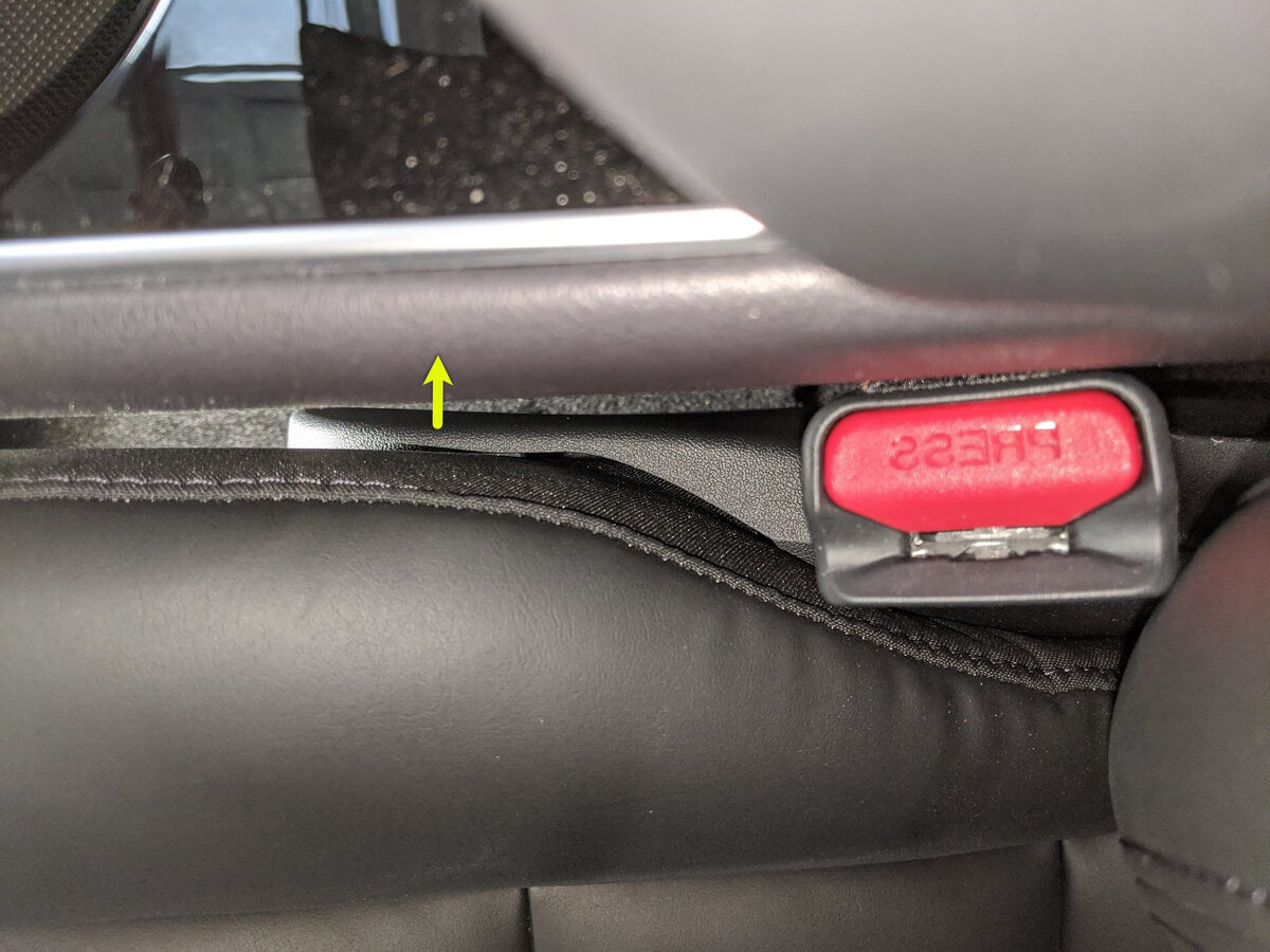 注2 个锁片,2 个连接器;朝车辆左侧按压锁片两侧,以释放座垫前边缘