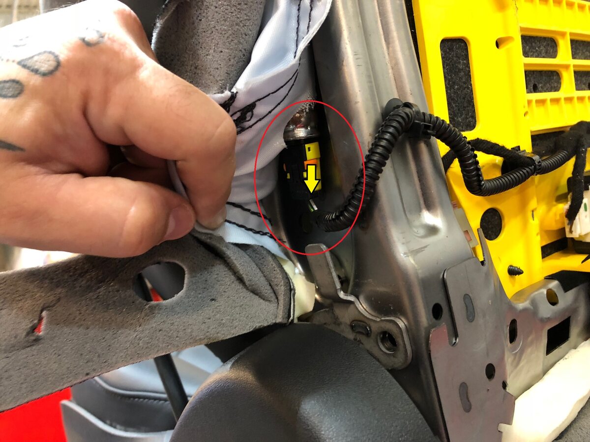- 将座椅蒙皮拉离气囊,以便接触气囊电气连接器