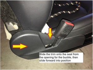注3 个卡子;将饰板通过锁扣开口滑到座椅上,然后向前滑动到位