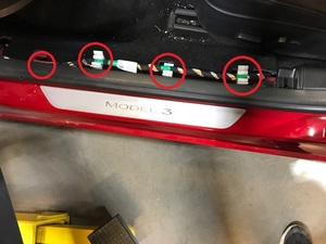 注3 个夹子;将座椅安全带预紧器线束夹放置到座椅滑轨上,并向下按压每个夹子以固定线束