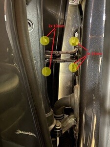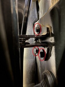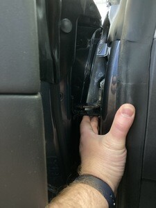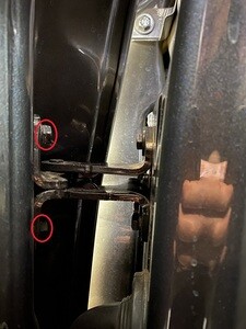 - 使用 IPA 湿巾清洁 LH 前车门上部铰链螺栓头,风干 1 分钟,然后再继续执行下一步。