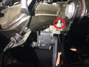 安装将左后行驶高度传感器固定到左后上尾连杆的螺母。