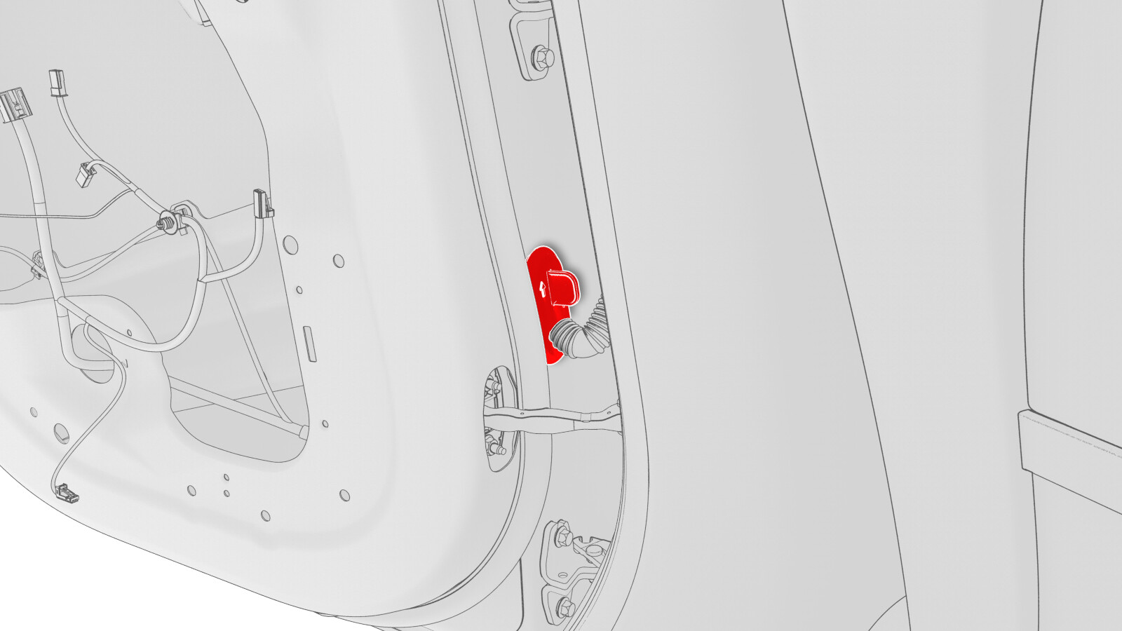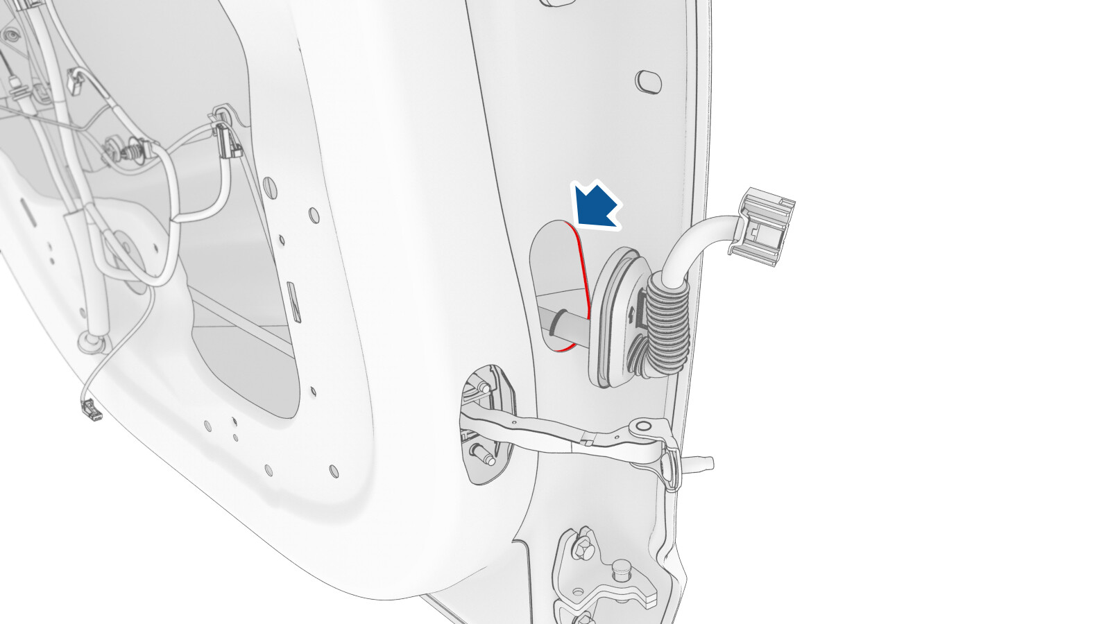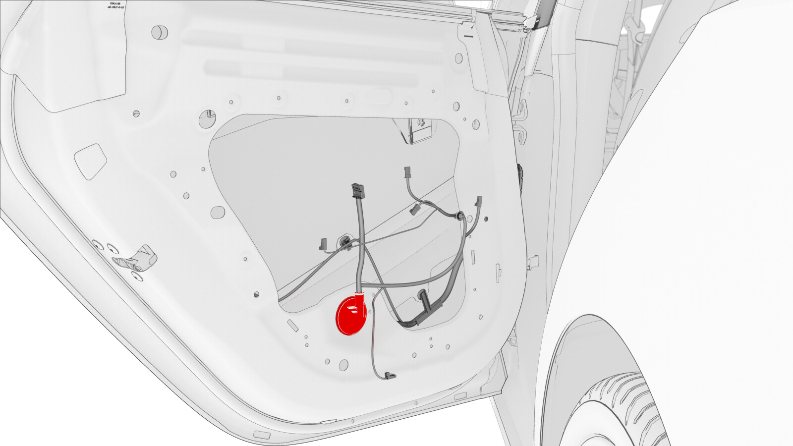 - 松开索环,然后将 LH 后门线束推过内部车门线束端口。