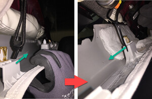 注无需从车上完全拆下 B 柱上部饰板;仅需将饰板挪至座椅安全带仍穿过 B 柱上部饰板的程度,然后将其放置一旁。