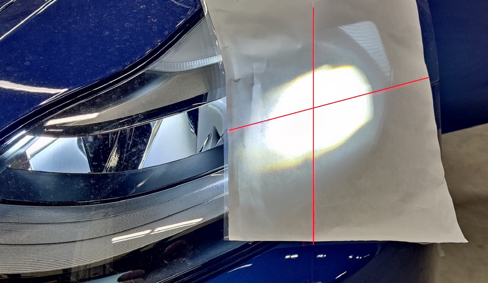 注早期生产的前照灯上可能没有标记。可以用一张白纸遮住左前照灯,这样可能有助于将激光器辅助十字准星与前照灯透镜中心对齐。
