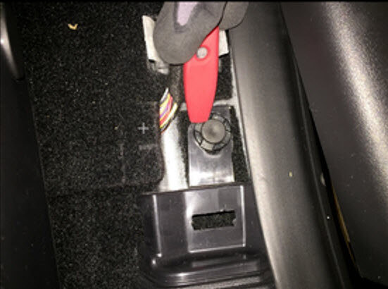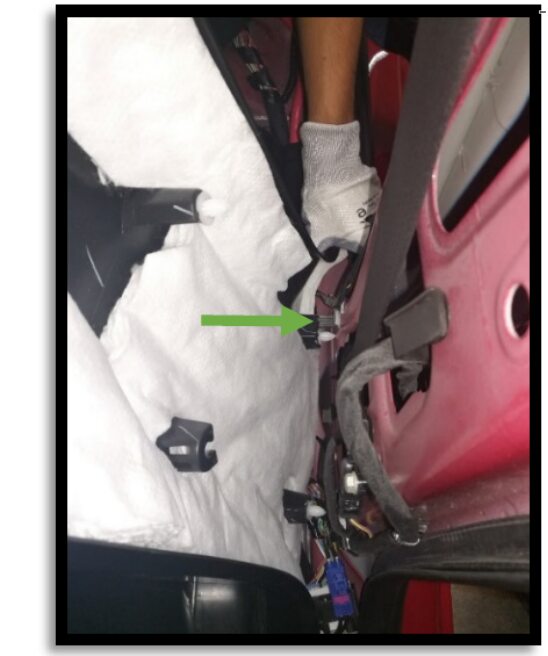 - Remove 2nd row floor mat from vehicle.