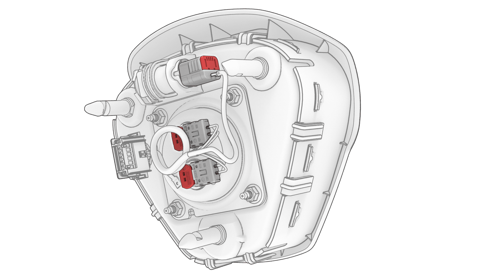 - 断开驾驶位气囊上的电气线束连接器 (x3)。