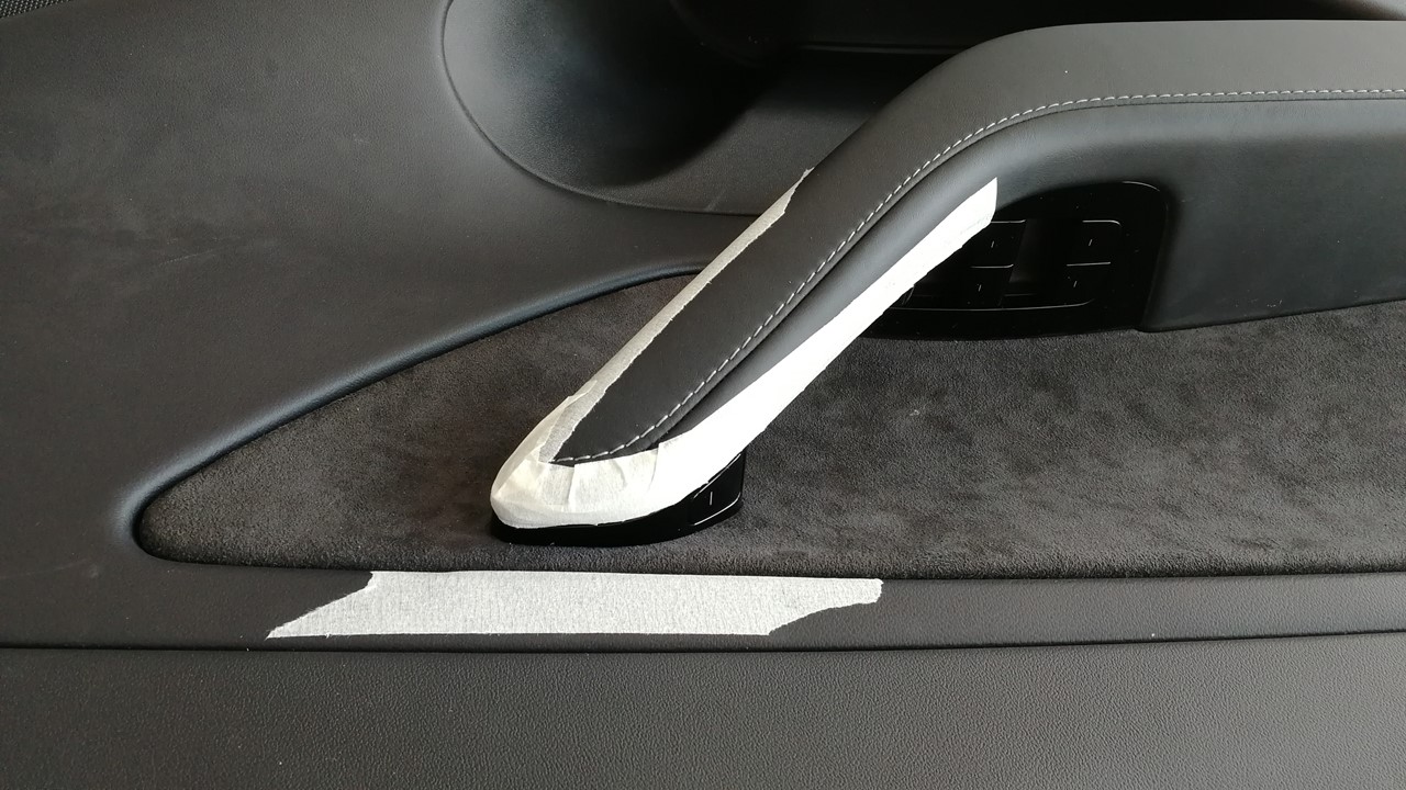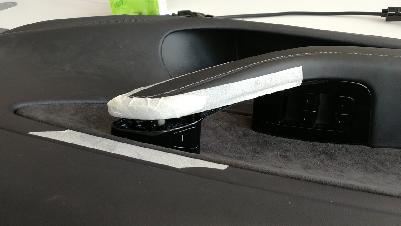- 在作业区域四周粘贴遮蔽胶带,以保护车门饰板。