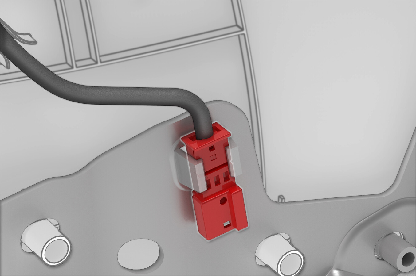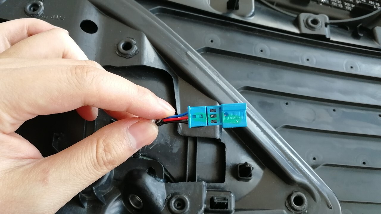 注标记针脚和电气连接器的位置。注分开针脚和插头,以确保其可以通过狭窄的饰板空间。