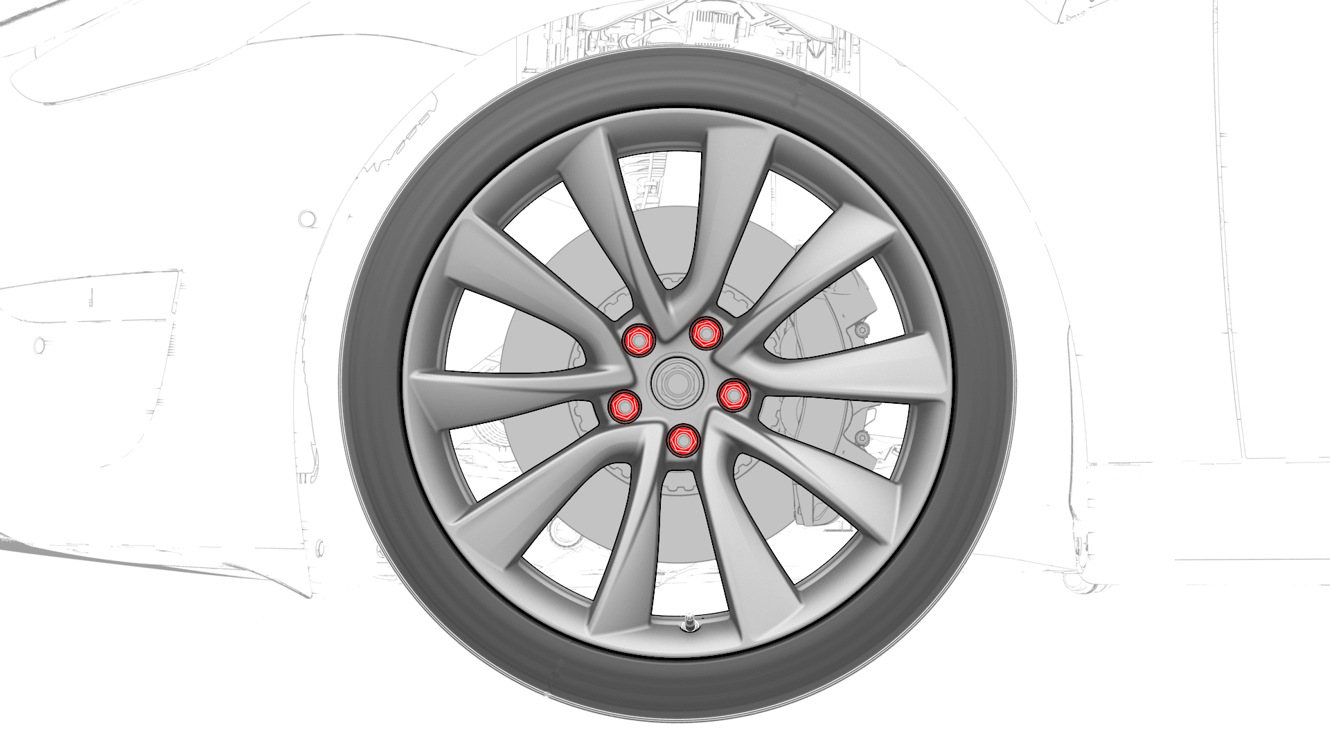 - 使用电动工具,以十字星形方式将轮毂螺母 (x5) 拧紧至初始扭矩。
