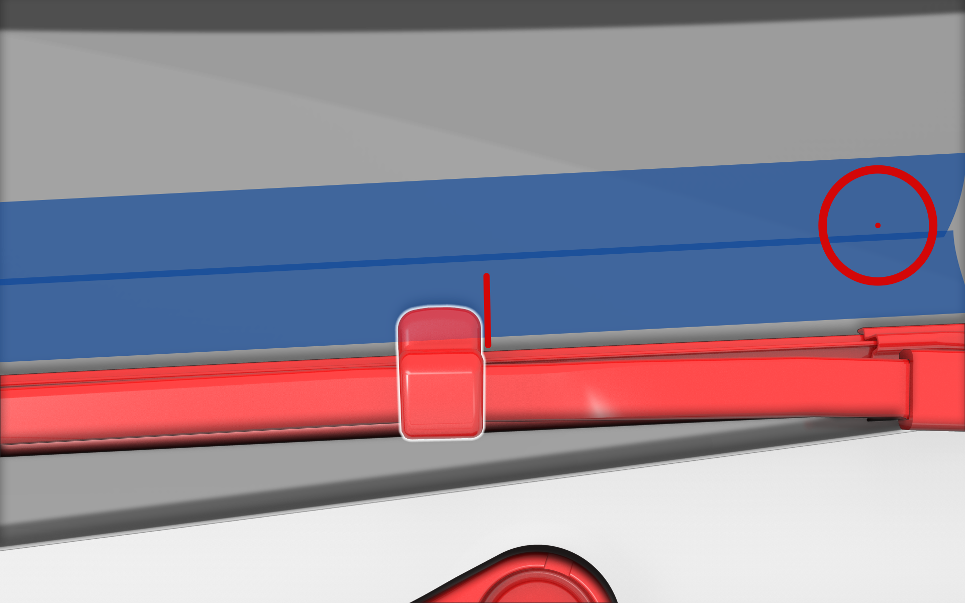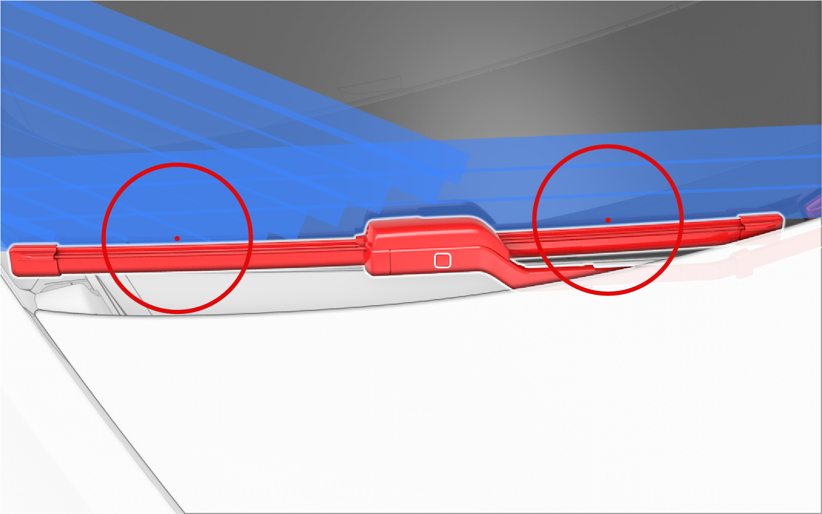 - 在清洗器叶片正上方的挡风玻璃上粘贴胶带,以帮助定位清洗器喷嘴目标点。