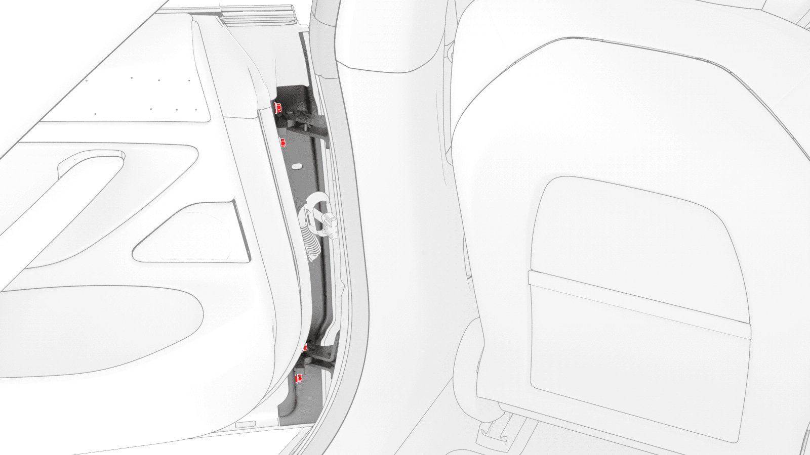 - 将各铰链的底部螺栓安装到车门内,并手动拧紧所有螺栓。