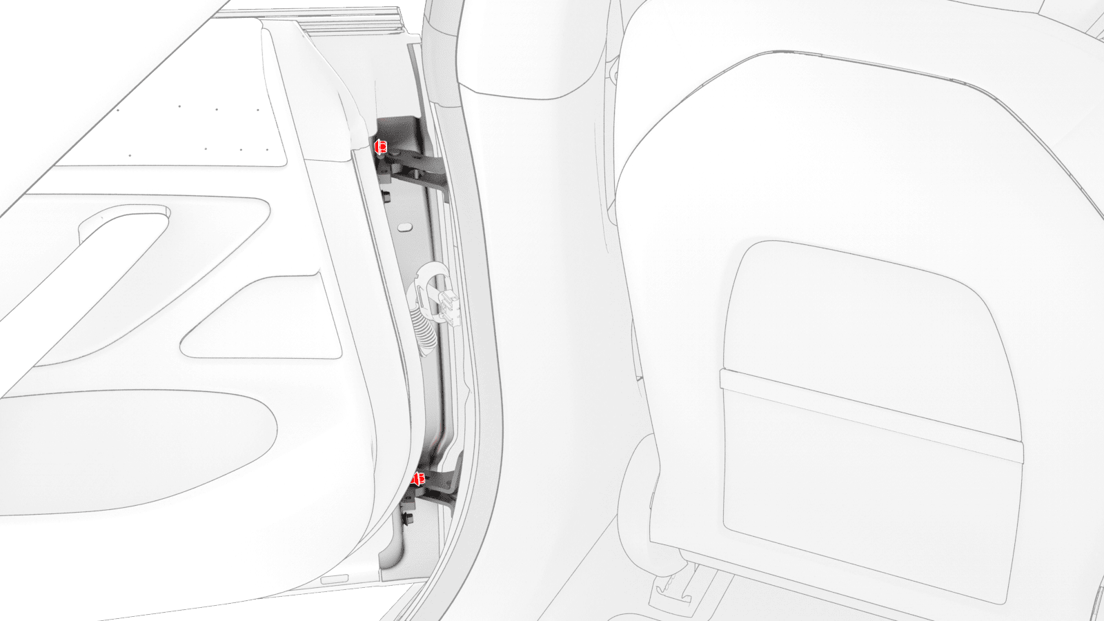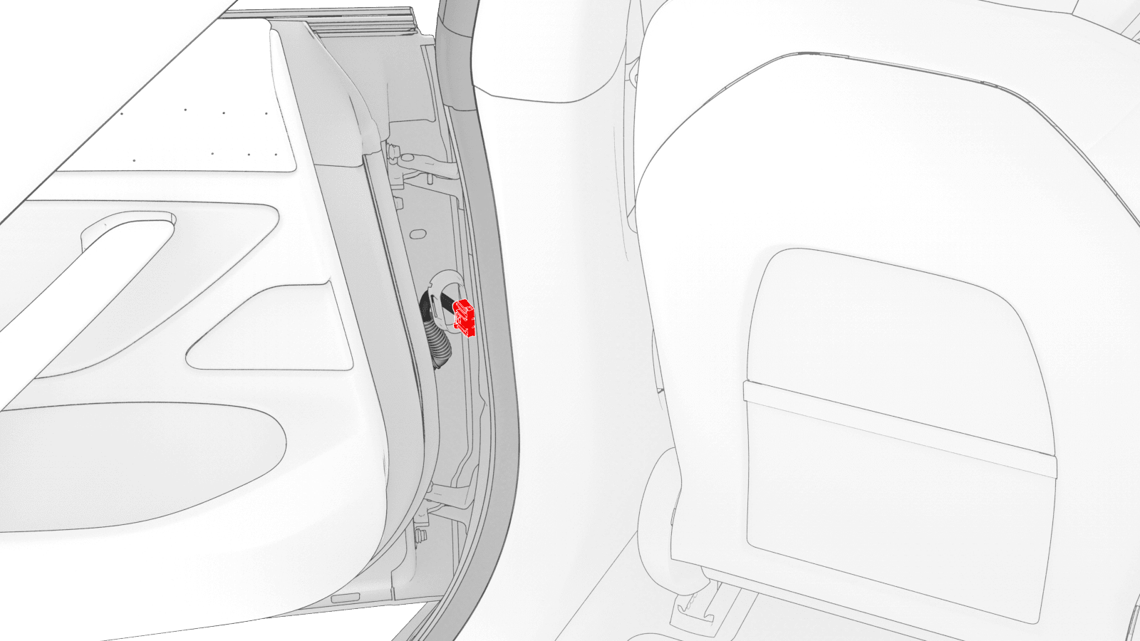 - 将 LH 后门线束连接器拉出 B 柱,然后将线束塞入 LH 后门前部腔体中。