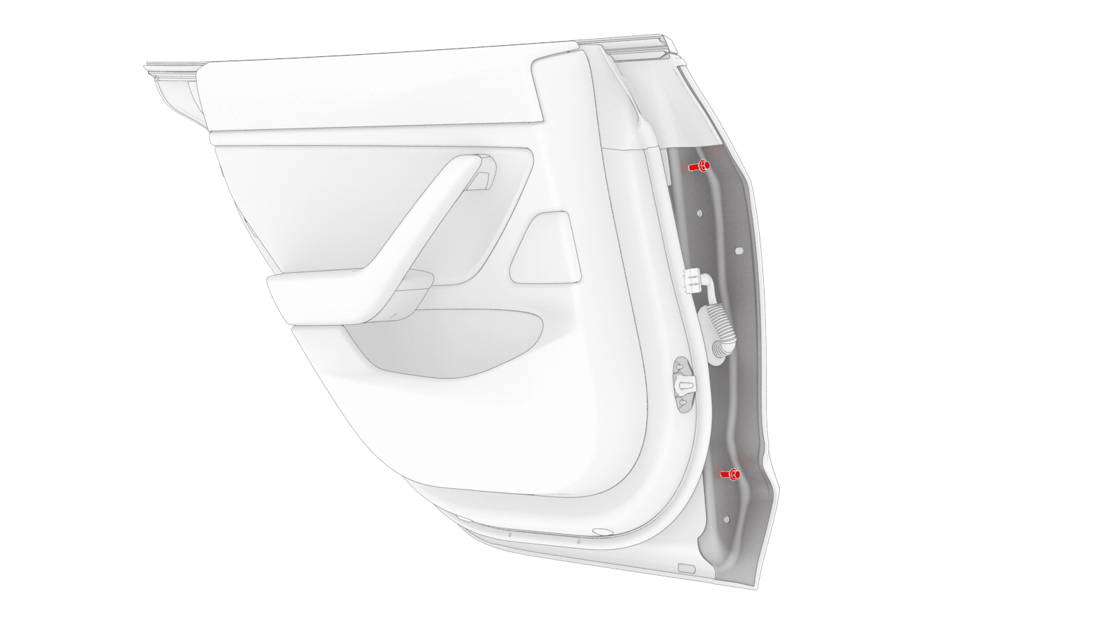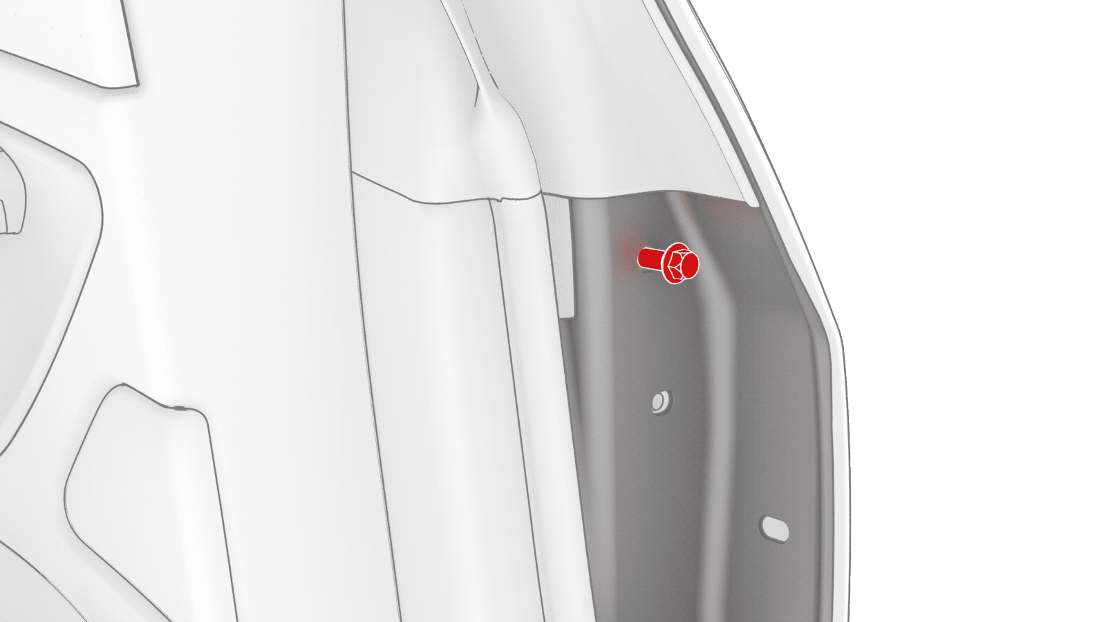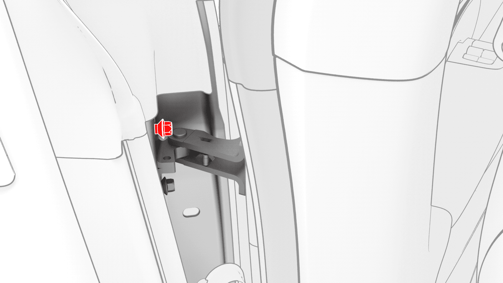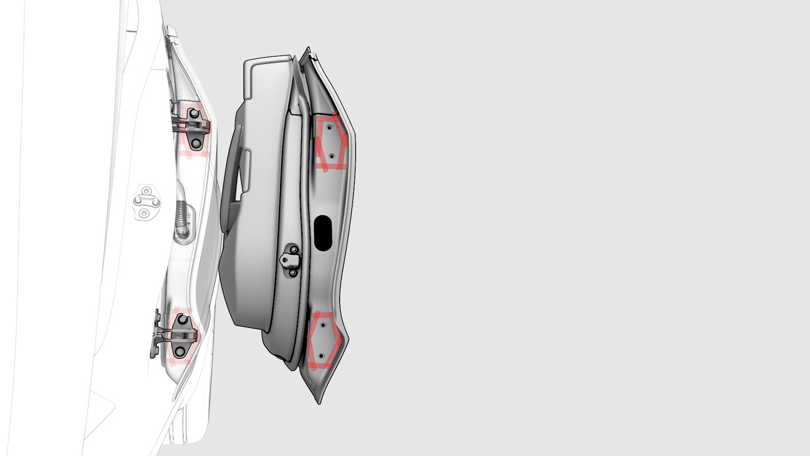 - 在助手的帮助下,将 LH 后门降至车门铰链上,将顶部螺栓置入铰链中。