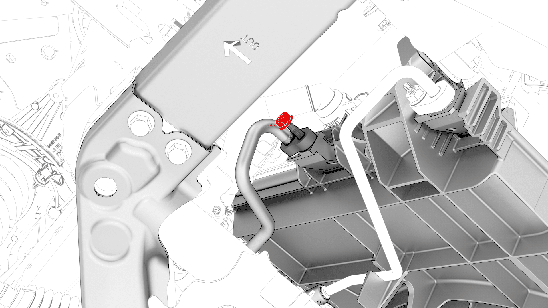 安装将压缩机至冷凝器高压管固定到冷却风扇模块的螺母。