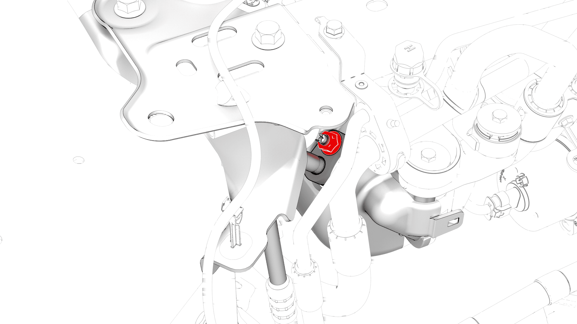 将压缩机至冷凝器高压管放入 EXV 总成,然后安装将液体管固定到冷却器与 EXV 总成的螺栓。