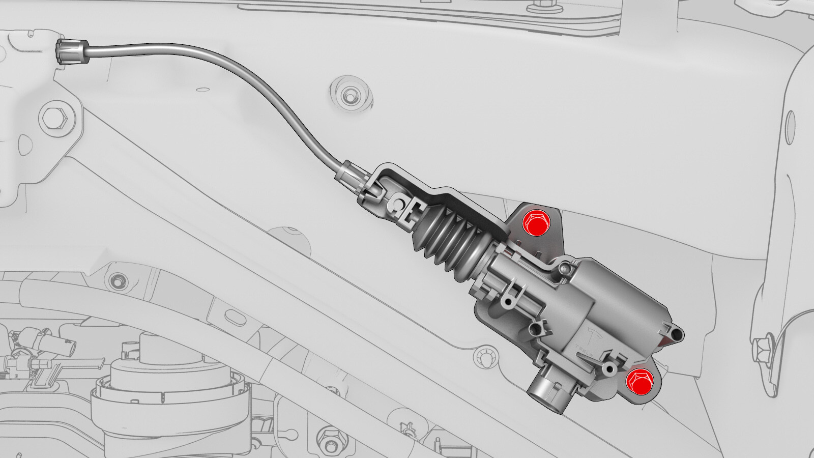 松开将前备箱盖锁执行机构固定到前端支架的螺栓,然后从车上拆下执行机构。