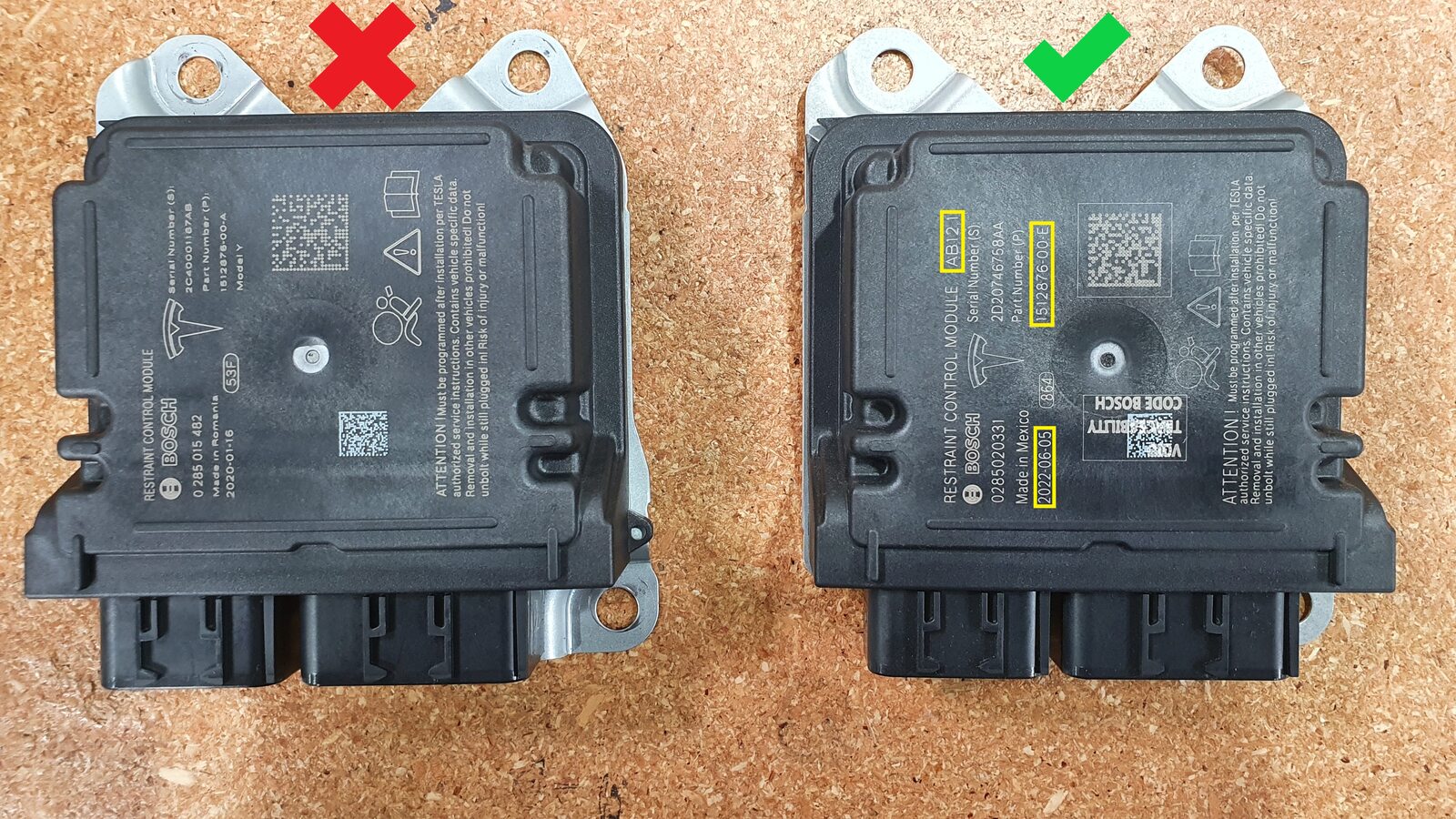attach the restraint control module to the vehicle, and then remove the module from the