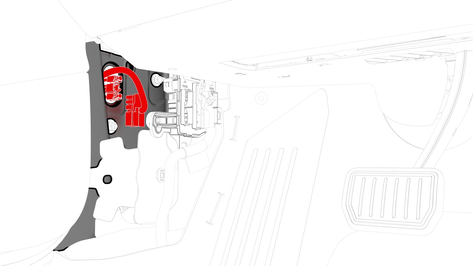 - 拆下 A 柱 LH 下部饰板。请参阅饰板 - A 柱 - 下 - LH(拆卸和更换)。