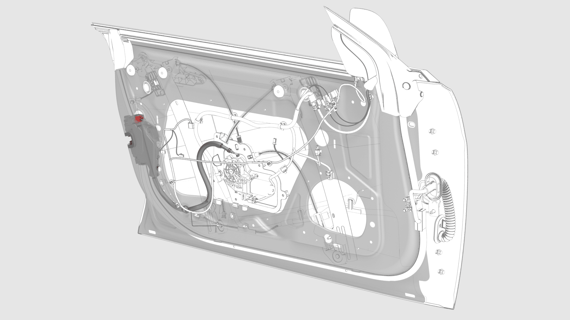 - 断开电气线束与车门闩锁连接器之间的连接。