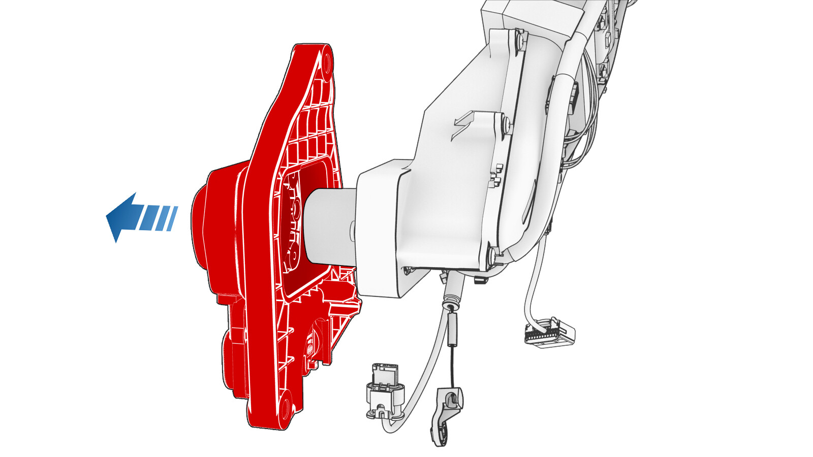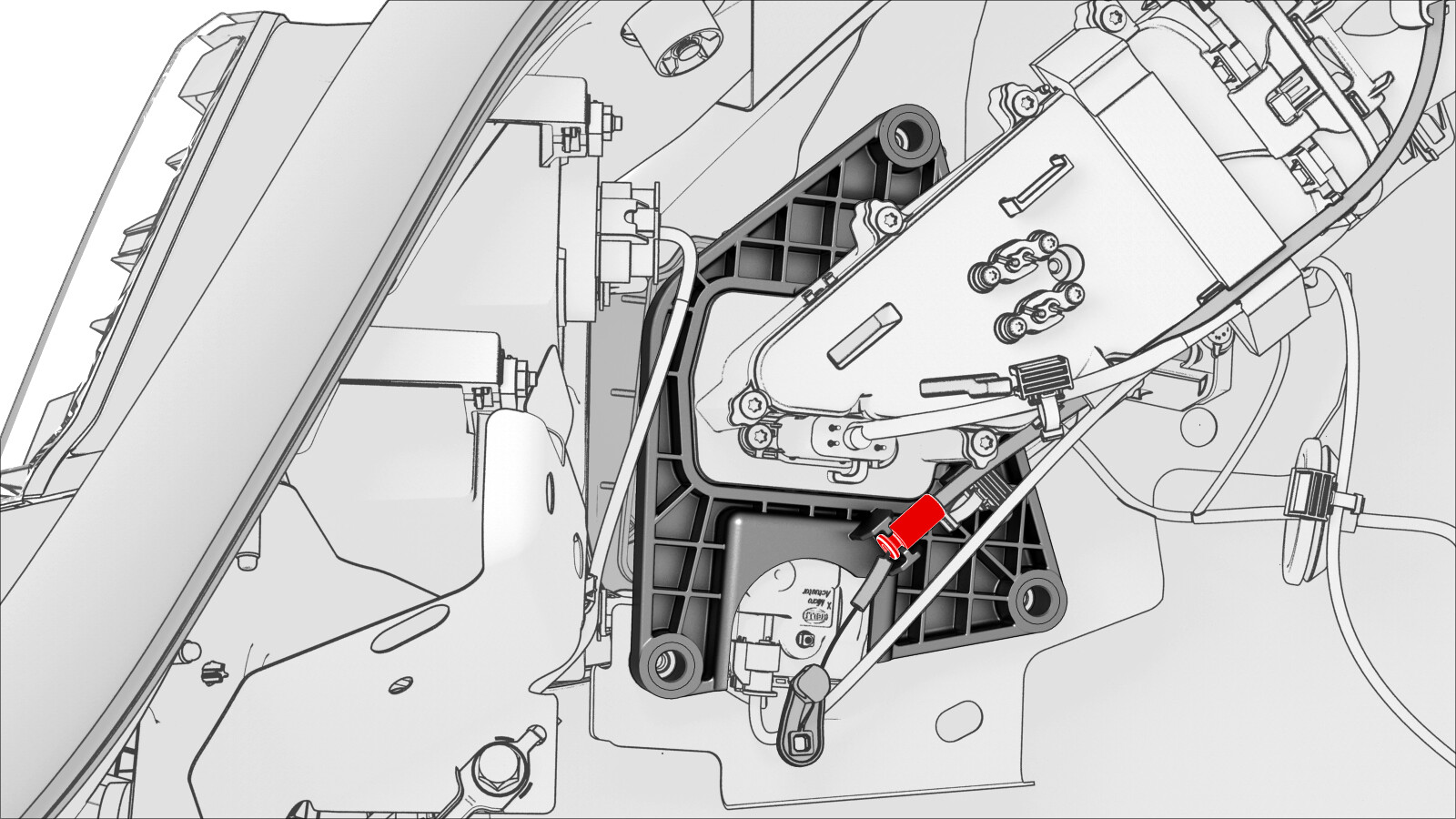 - 从充电接口总成的锁片上松开闩锁线缆。