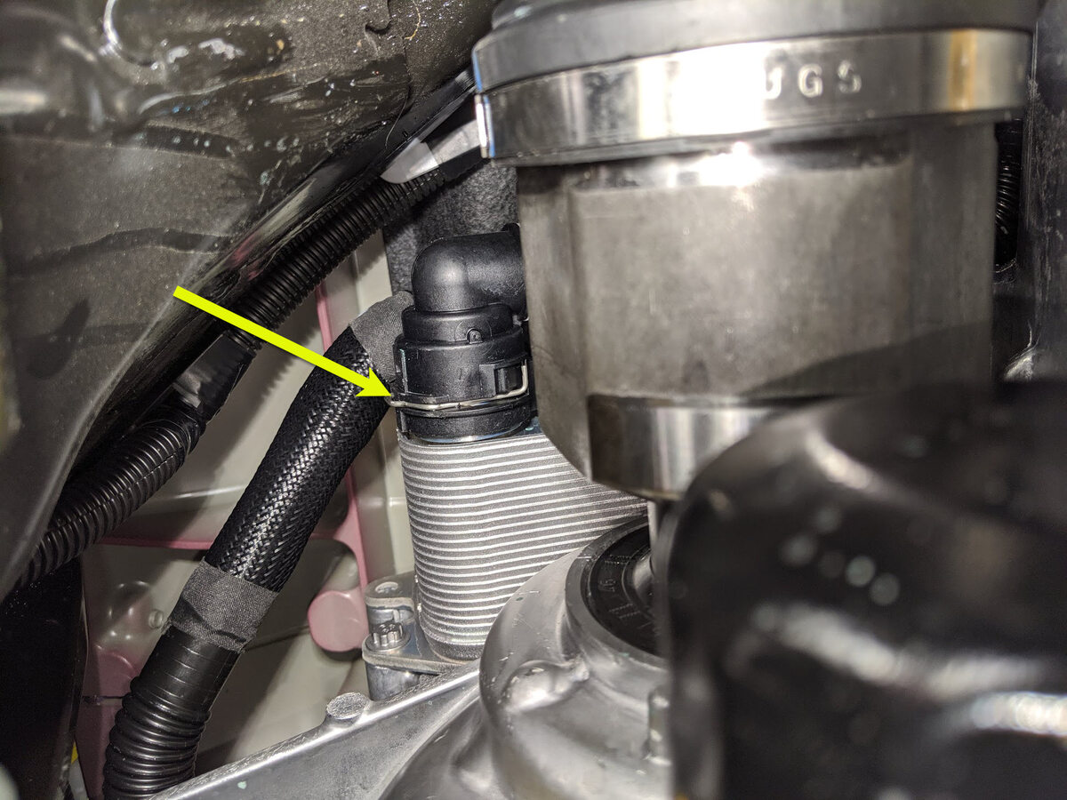 注1x spring clip, 2x plugs, Perform push-pull-push test to make sure hose is fully engaged, Use shop towel to clean any coolant residue if necessary, Loss of coolant greater than 1L requires coolant vacuum fill