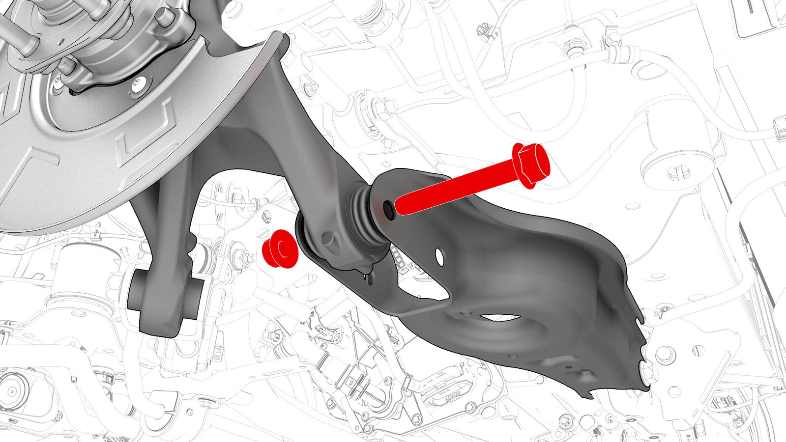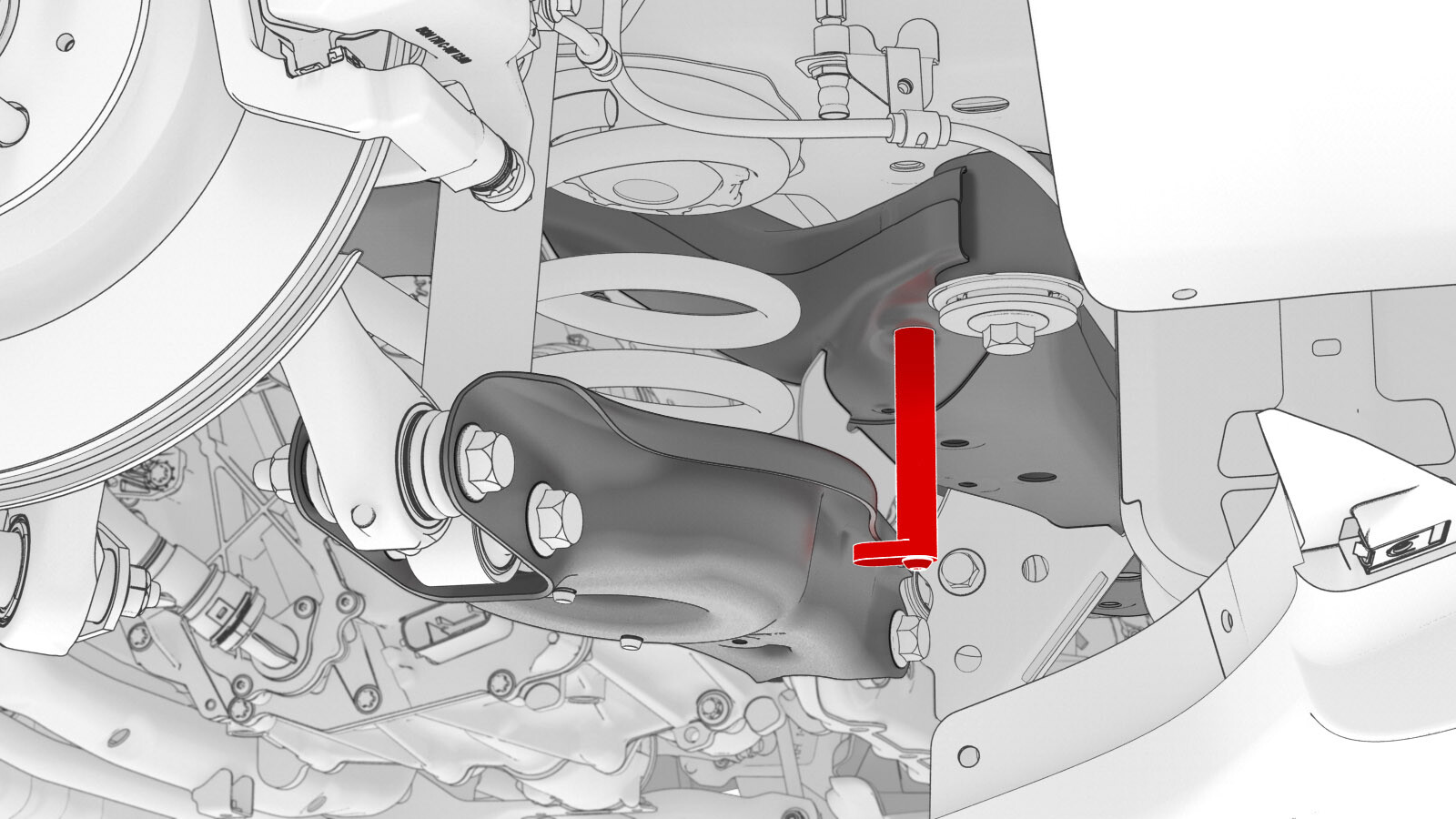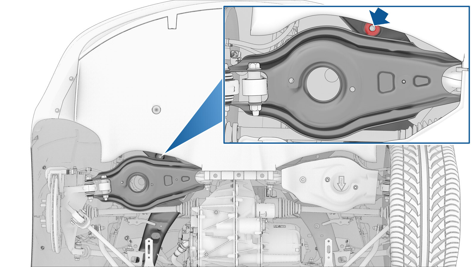 - 松开将左后下方控制臂固定到副框架的螺母。