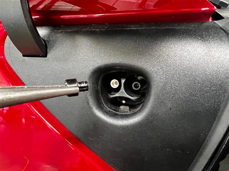 - 使用尖嘴钳小心地将屏蔽前端拉离充电接口总成,将其从车上拆下。对其余屏蔽前端重复此步骤。