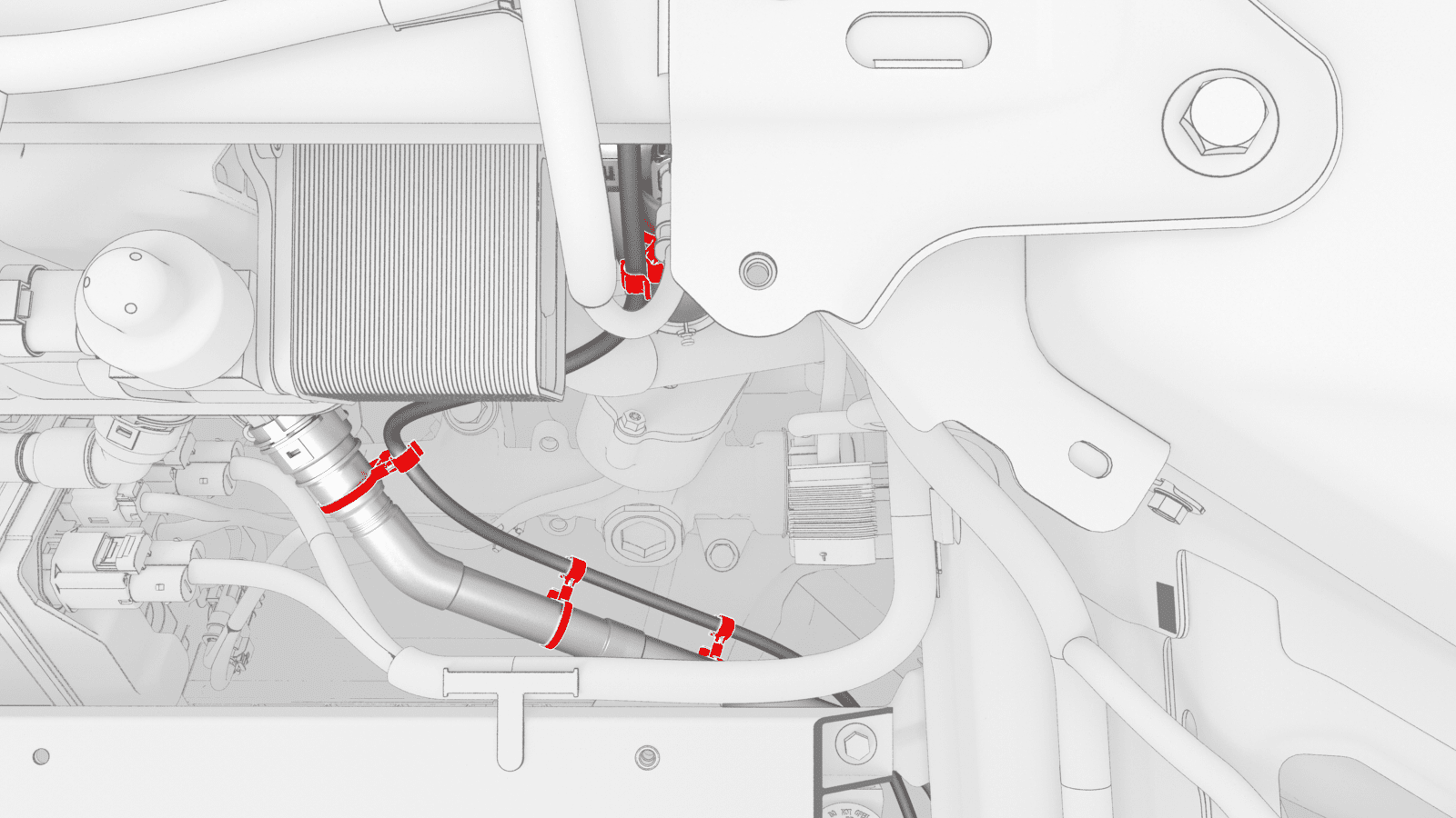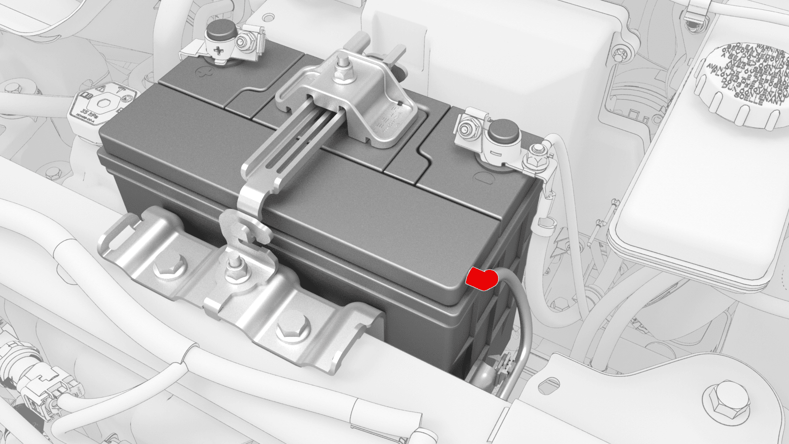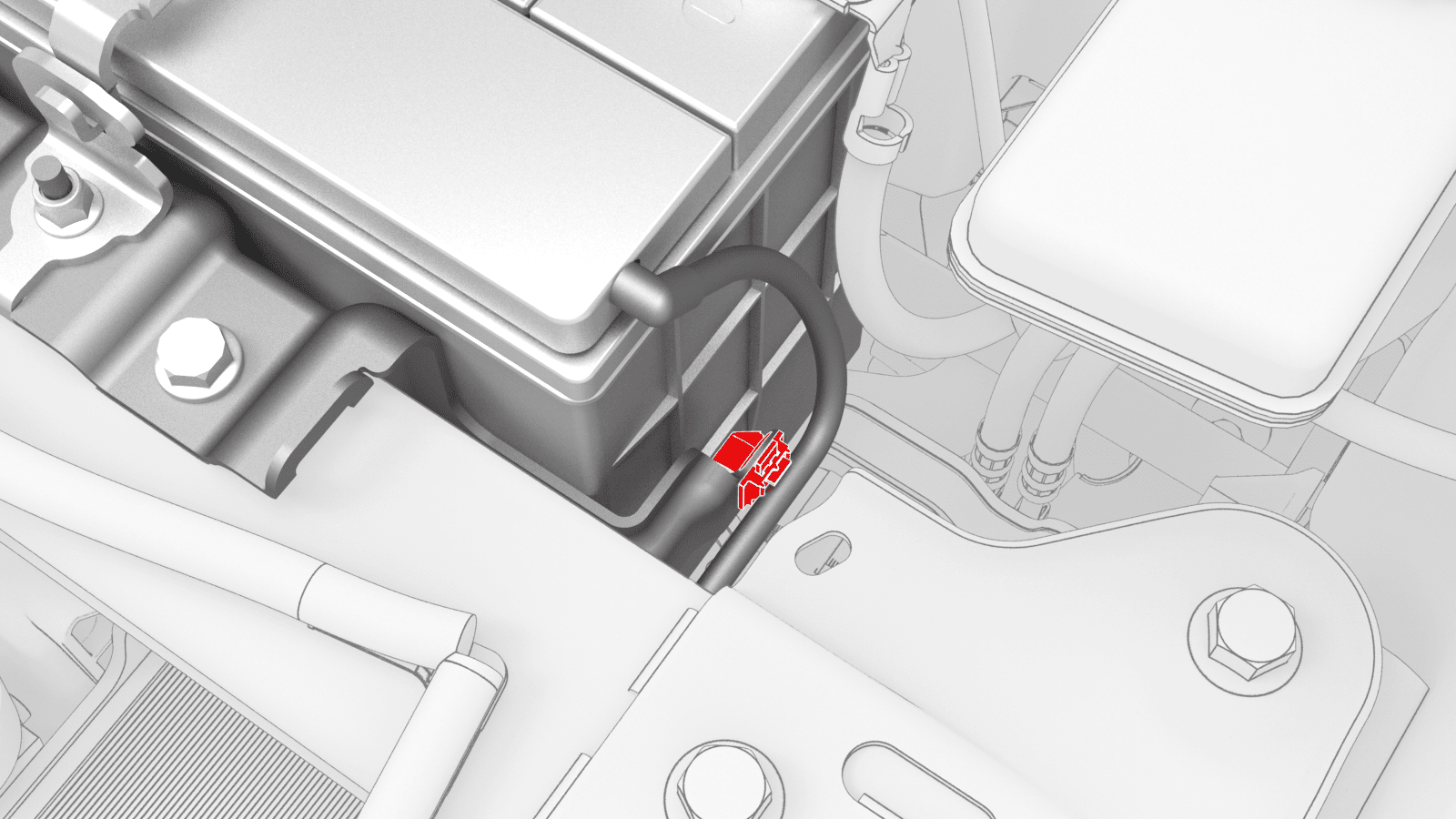 - 从 12V 电池的 LH 侧拆下 12V 电池通风口软管。