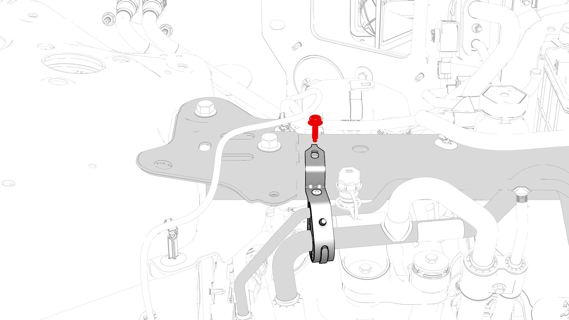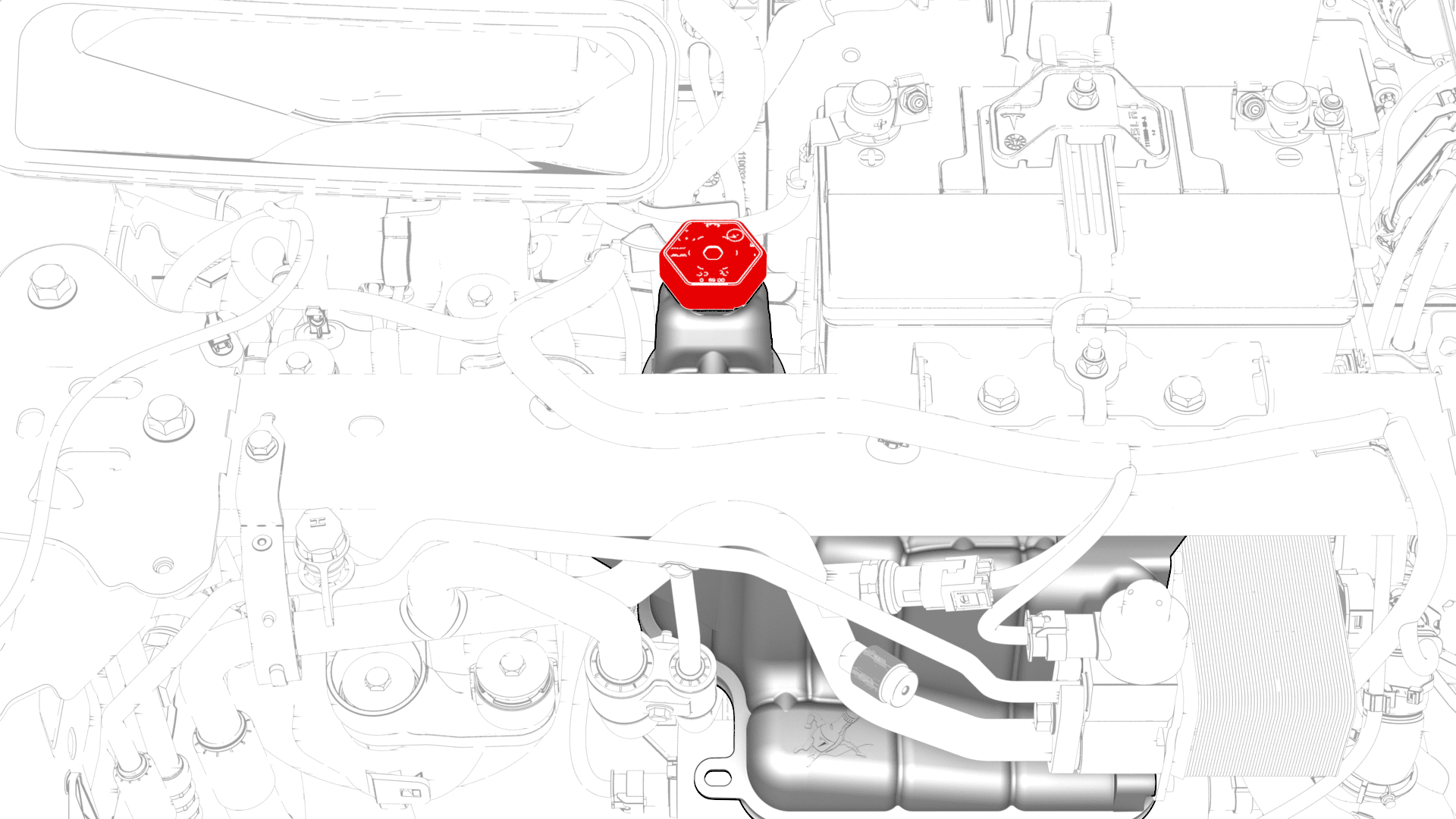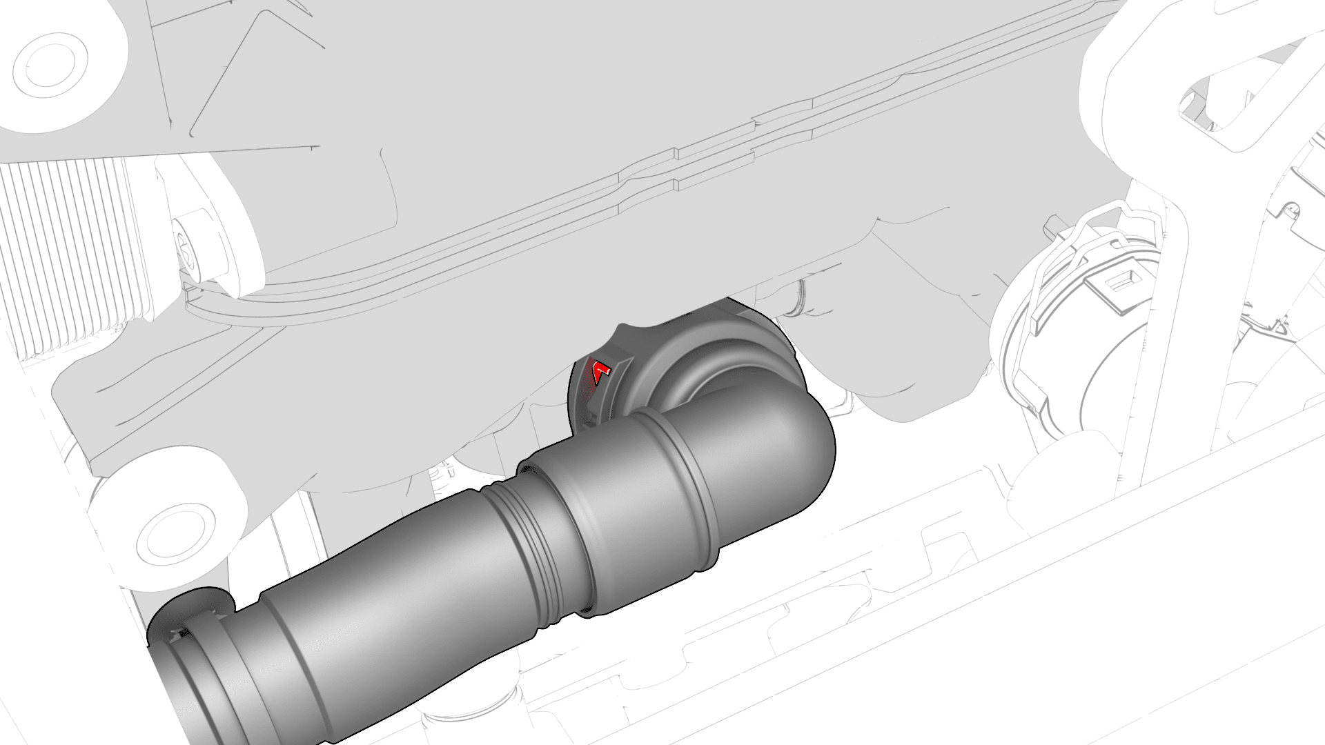 - 将电池回流软管连接到超级瓶左后侧,然后紧固夹子。