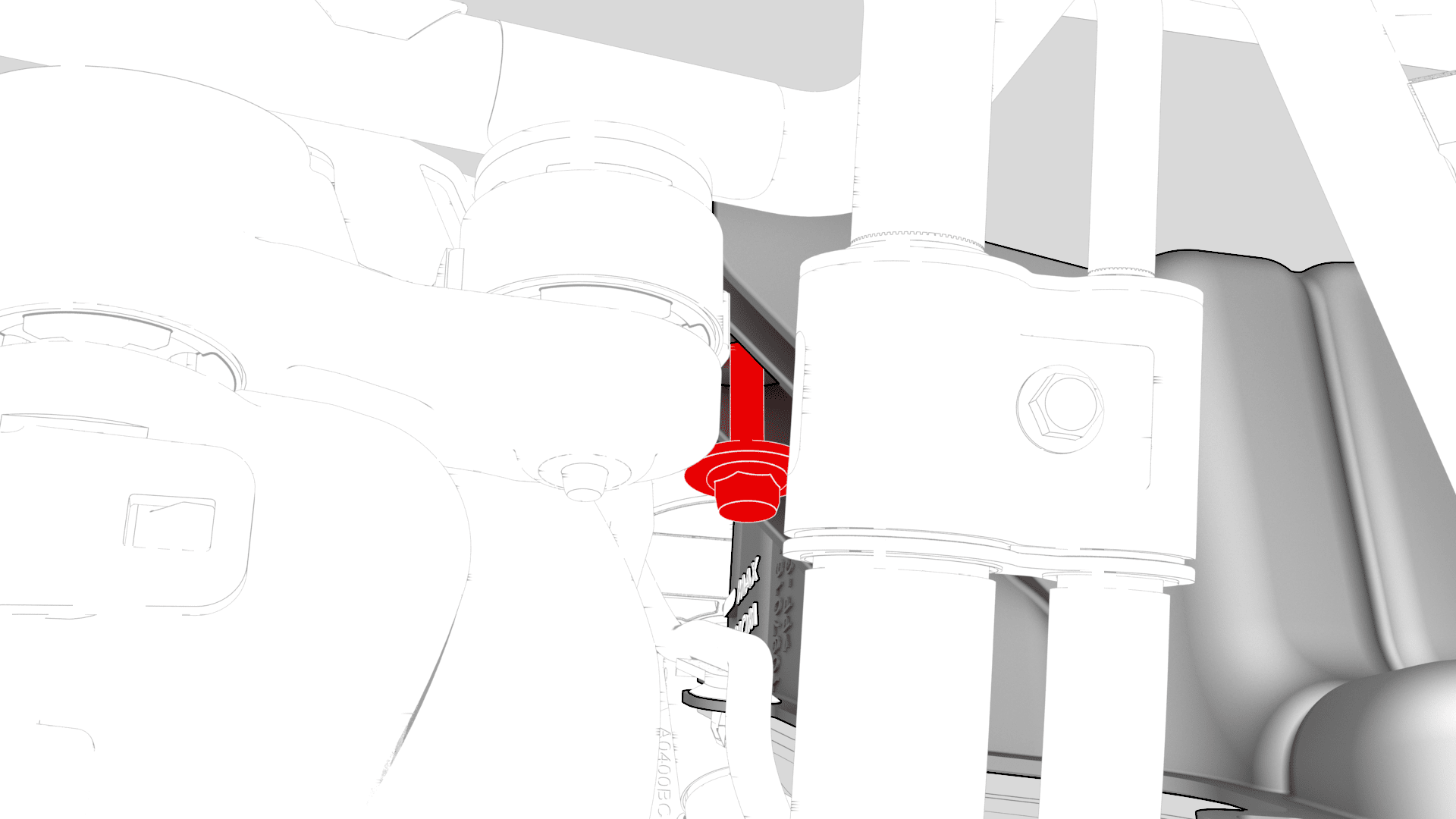 - 拆下将超级瓶固定到减震塔支架的螺栓。