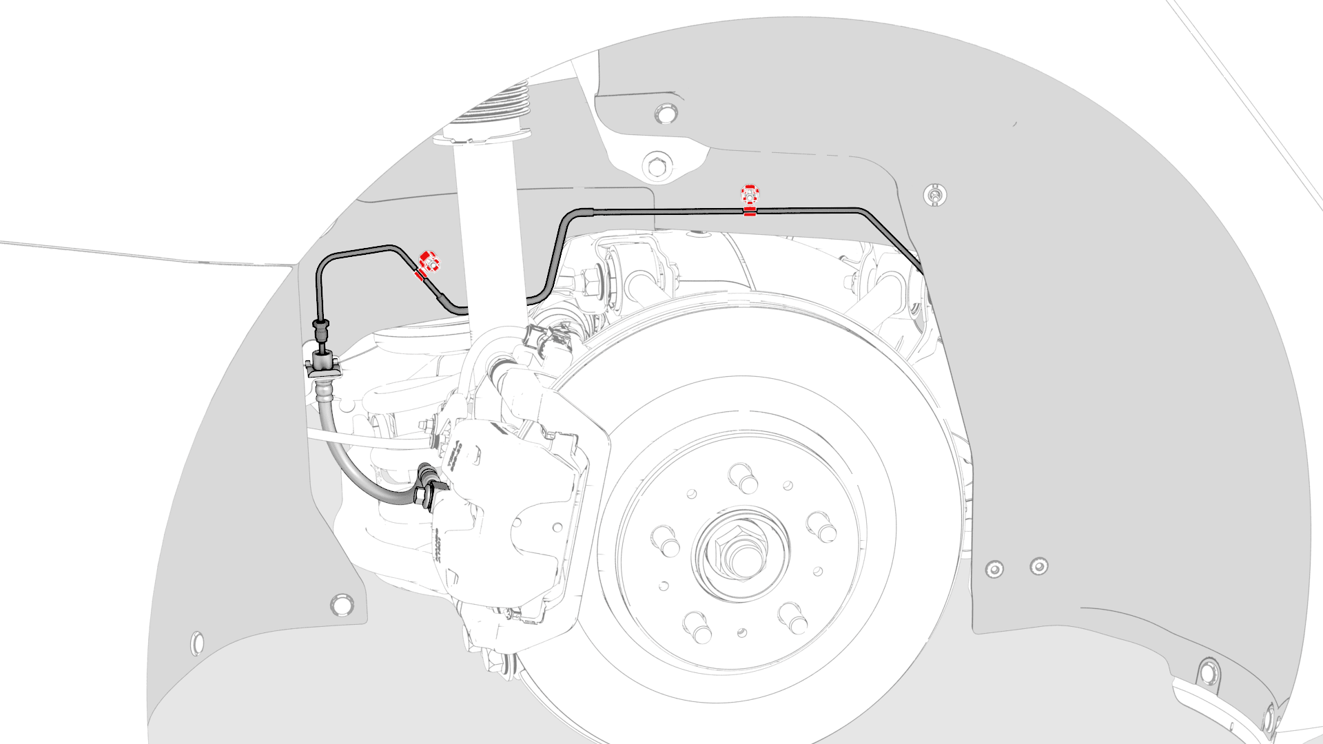 - 将制动管路安装到车身,然后紧固将制动管路连接到车身的夹子。