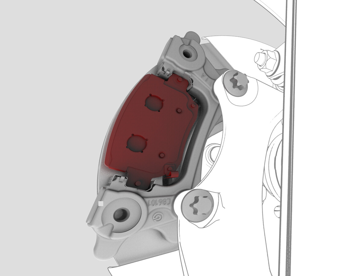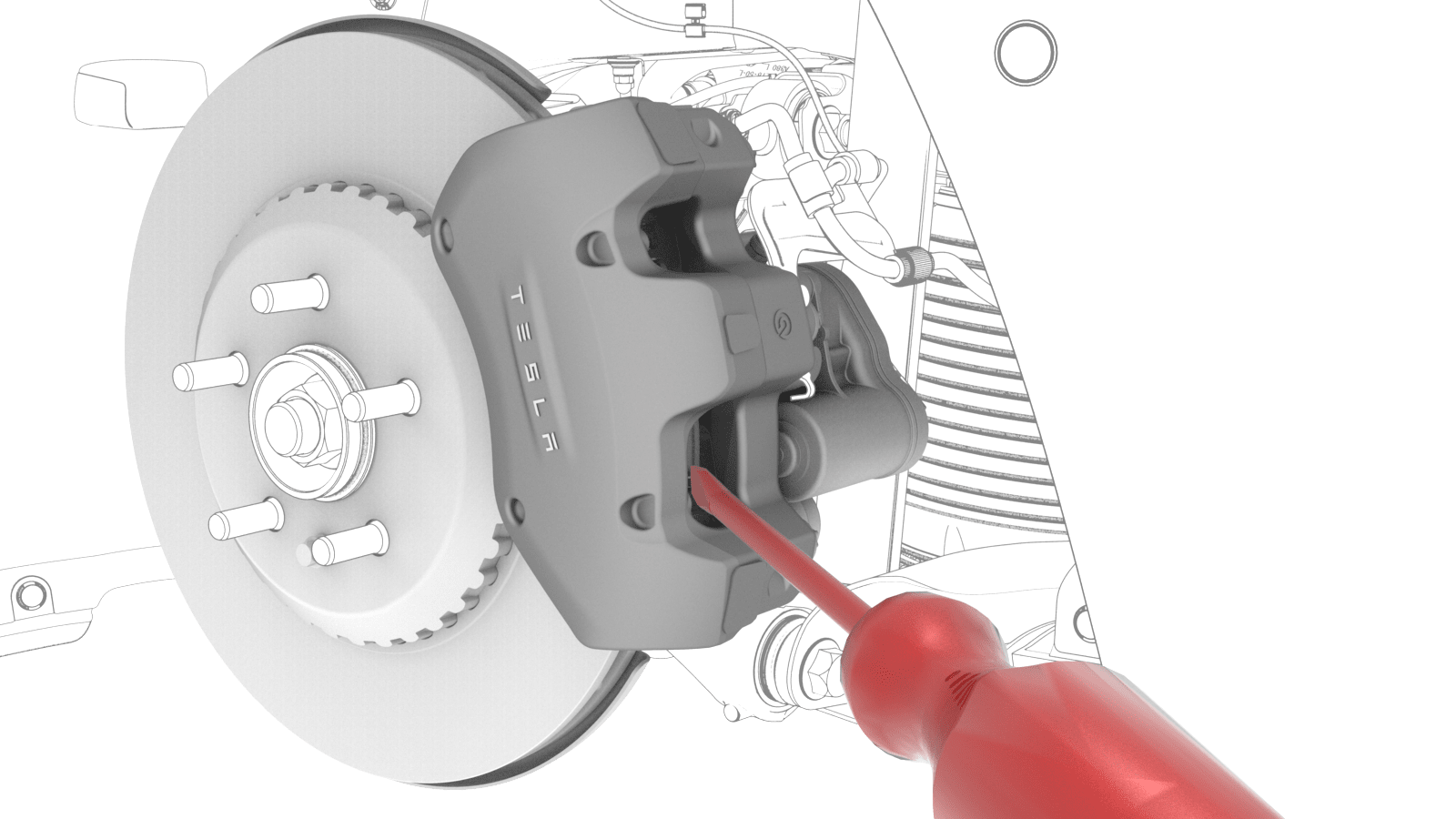 - 使用一字螺丝刀,小心地将卡钳推离制动盘,以下压制动器活塞。