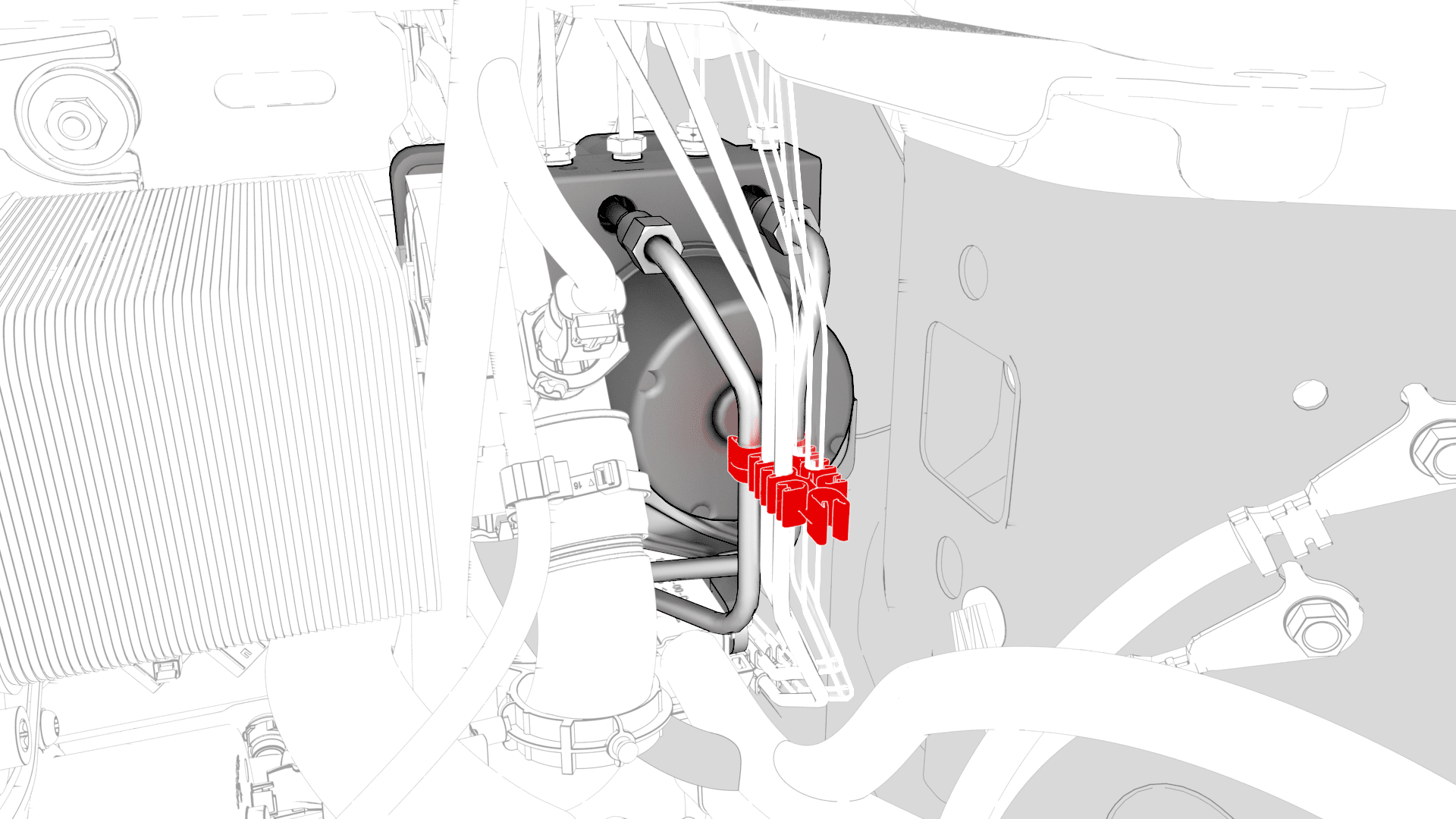 - 松开将电气线束固定到主缸处制动管路的夹子。