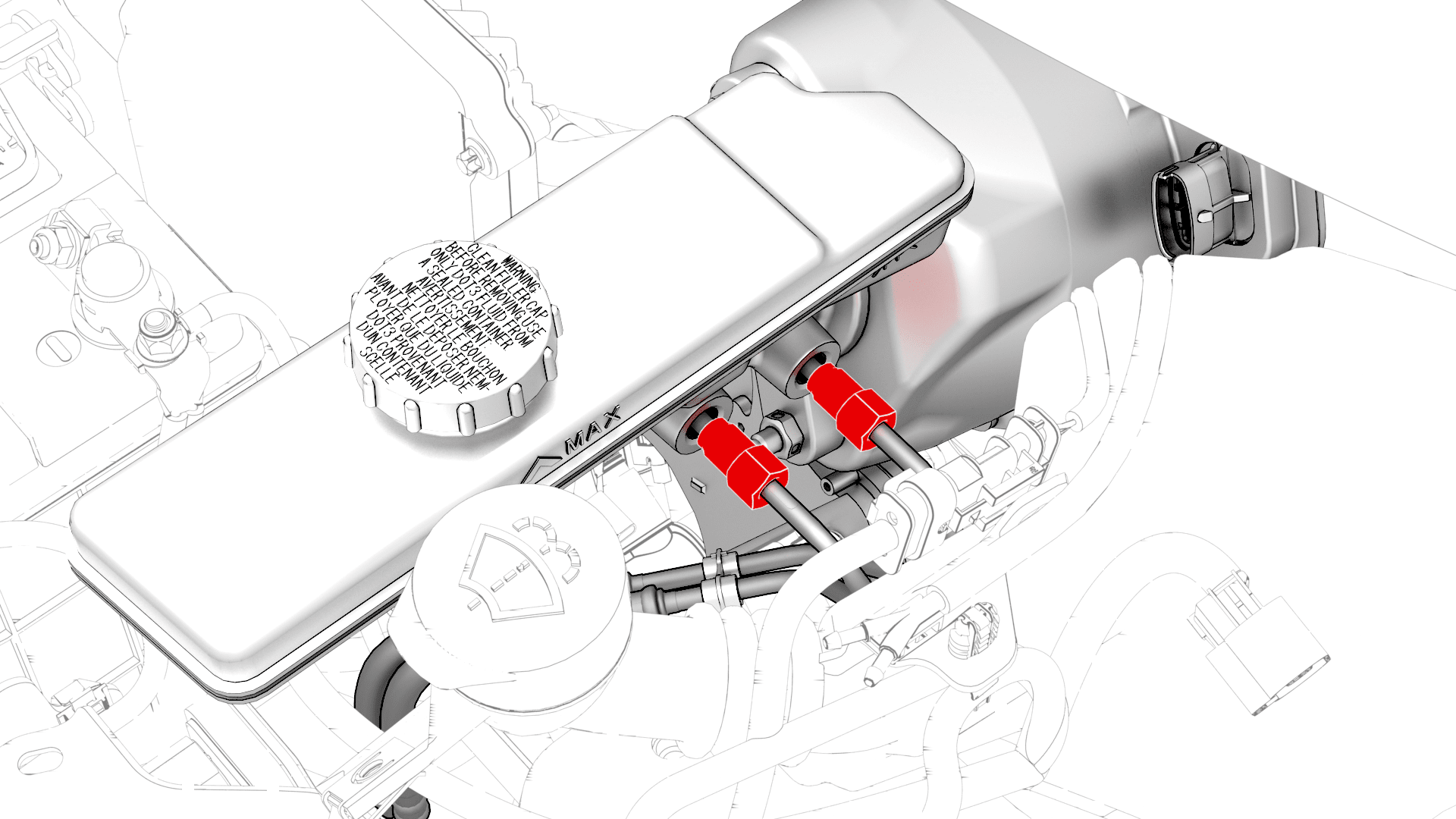 16 Nm (11.8 lbs-ft) - 紧固将电气线束固定到主缸处制动管路的夹子。