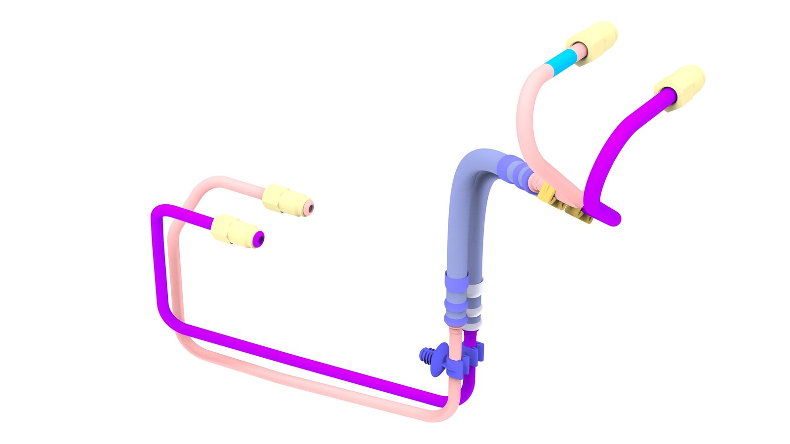 - 将制动管路放到防抱死制动系统单元和主缸适当位置。