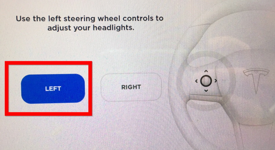 2019 年 6 月 30 日之前生产的 Model 3 车辆必须使用此程序进行调节。该日期之后生产的 Model 3 车辆也可使用大灯测试仪工具进行调节;请参阅前照灯 - 调节 - 欧洲、中东和非洲(工具法)。