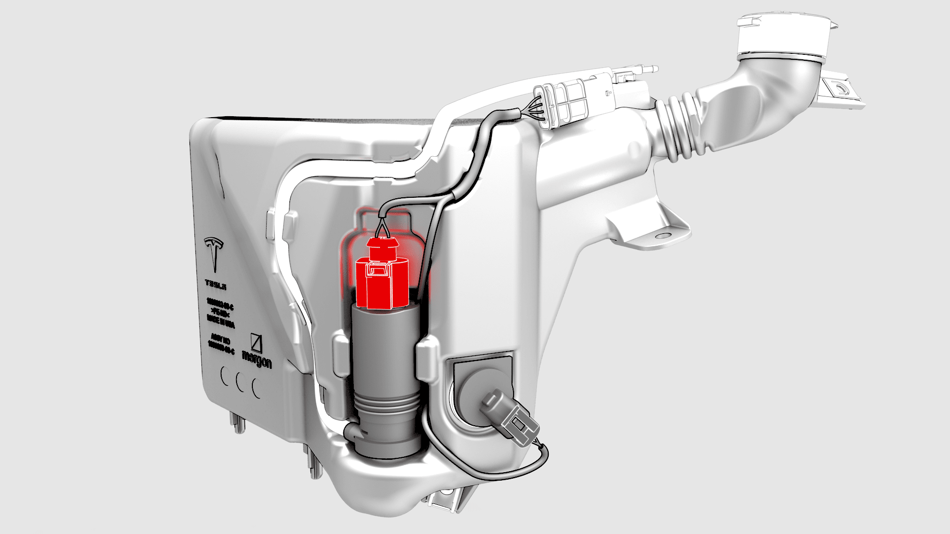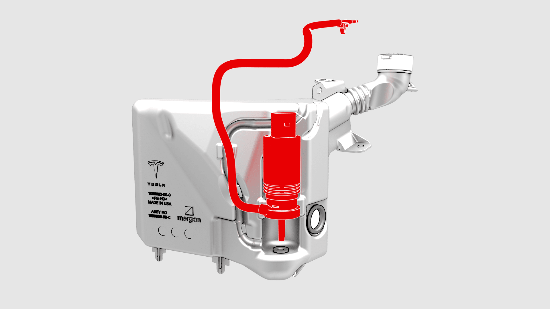 - 将电气线束连接到挡风玻璃清洗器储液罐连接器。