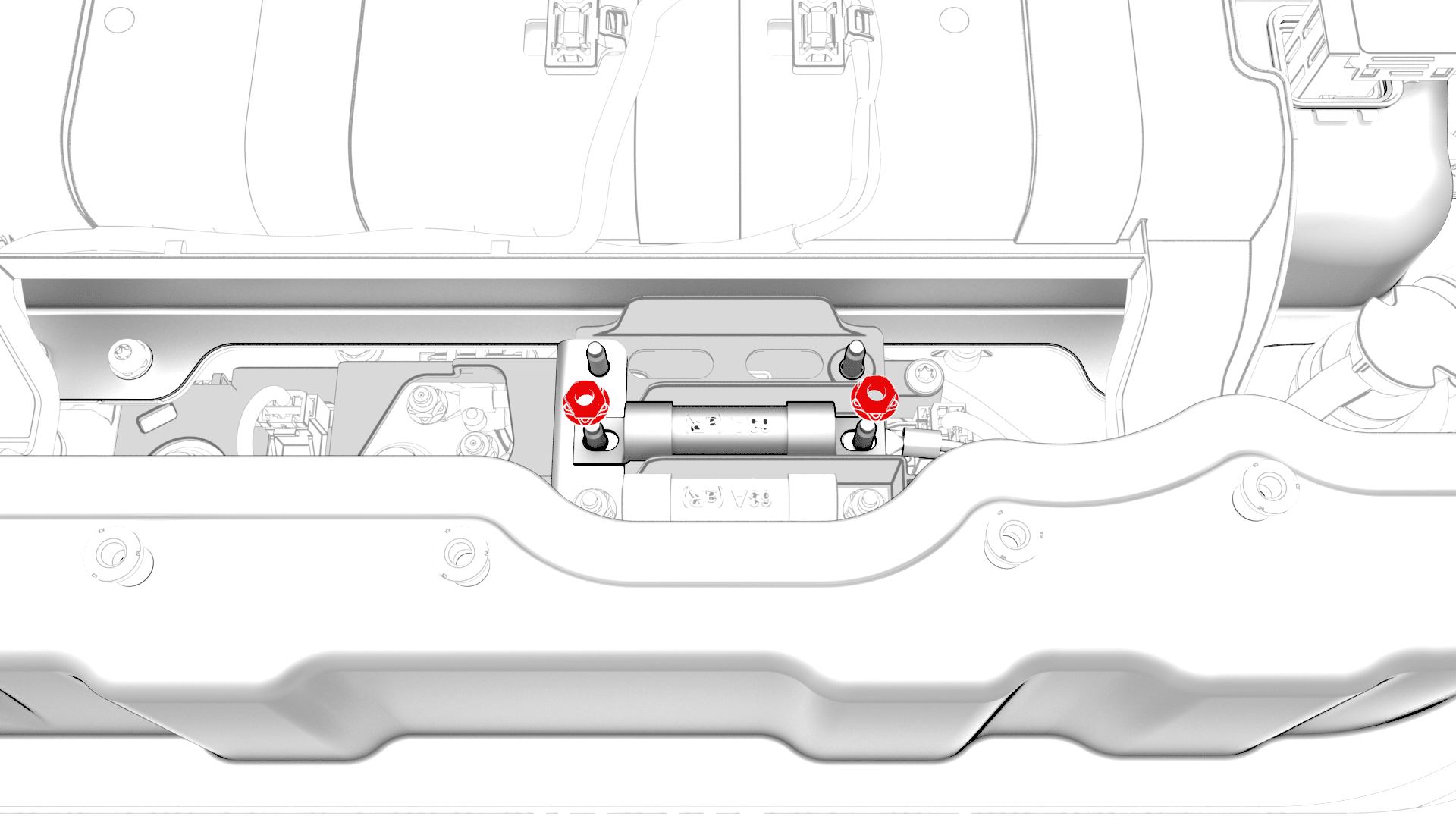 - 拆卸并弃置将空调压缩机保险丝固定到右侧高压电池仓母排的螺母,然后拆下保险丝。