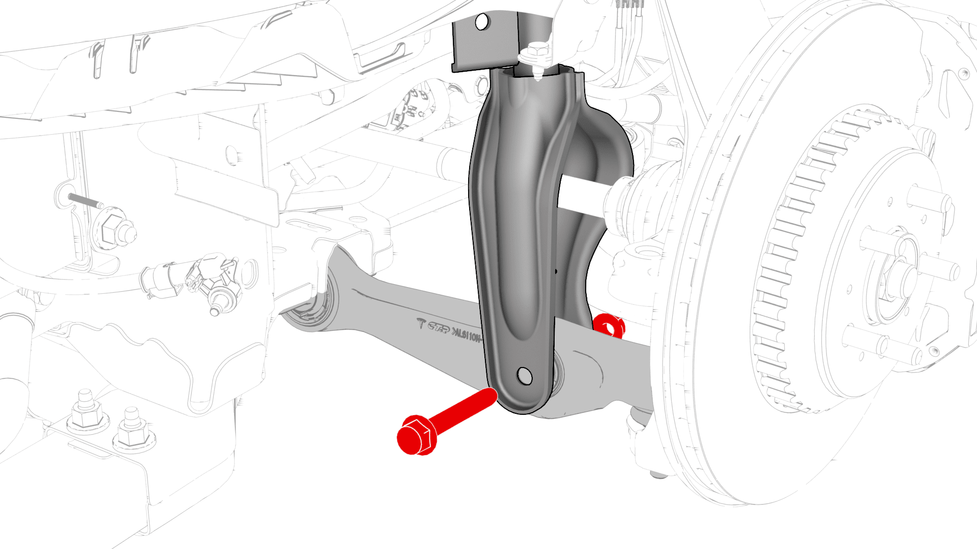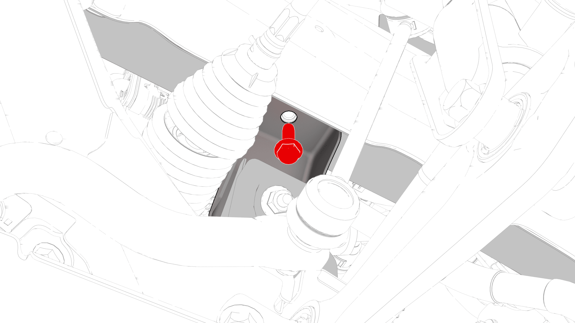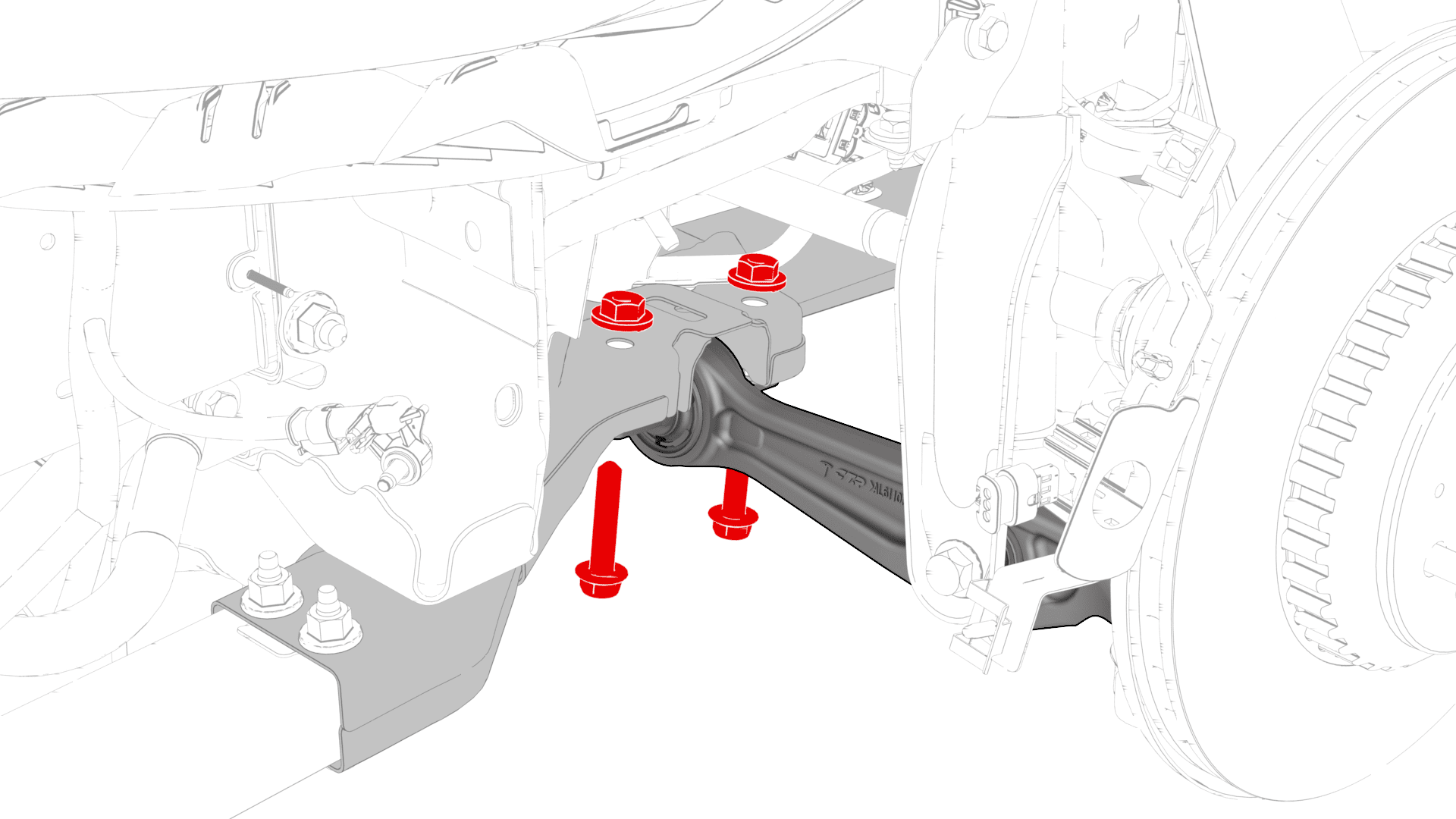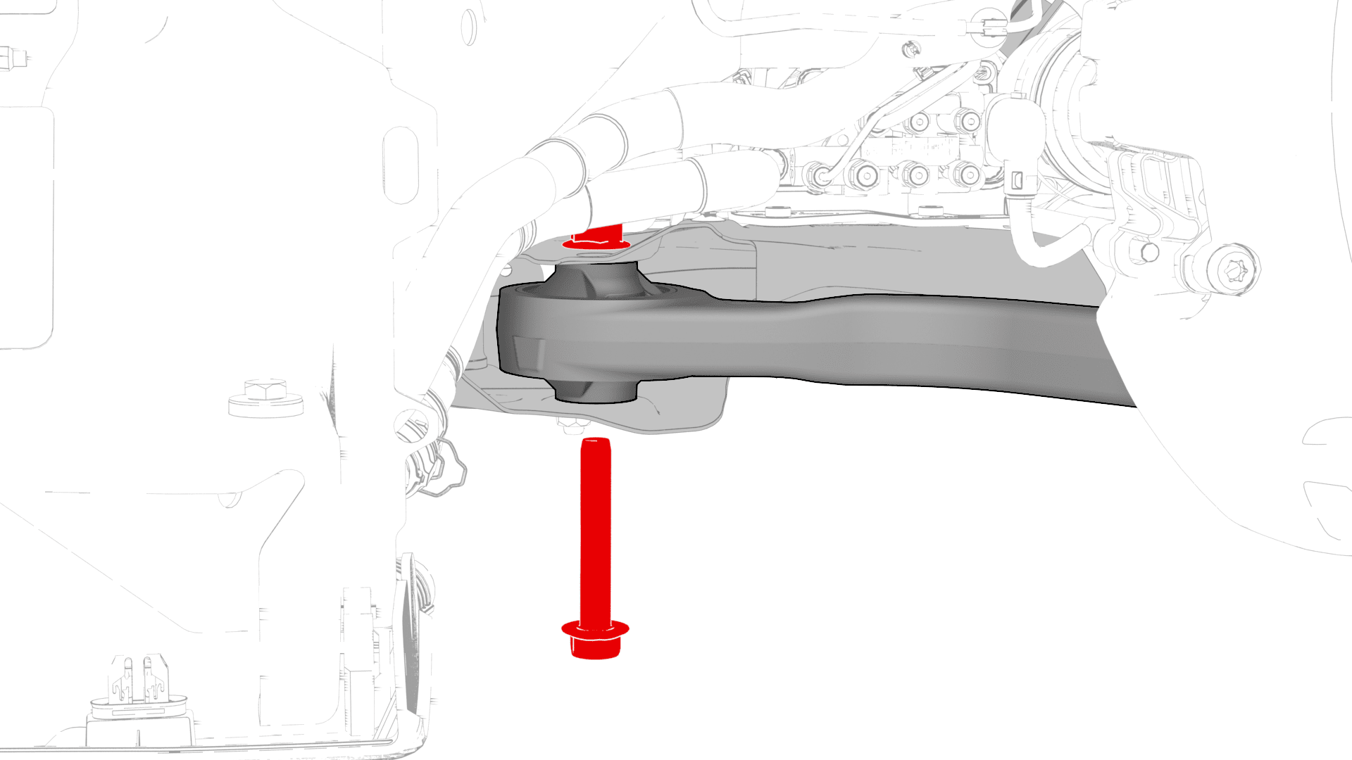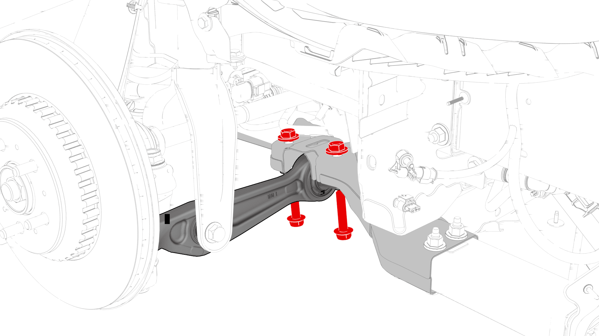 紧固将左前下横向连杆固定到前副车架的螺栓。