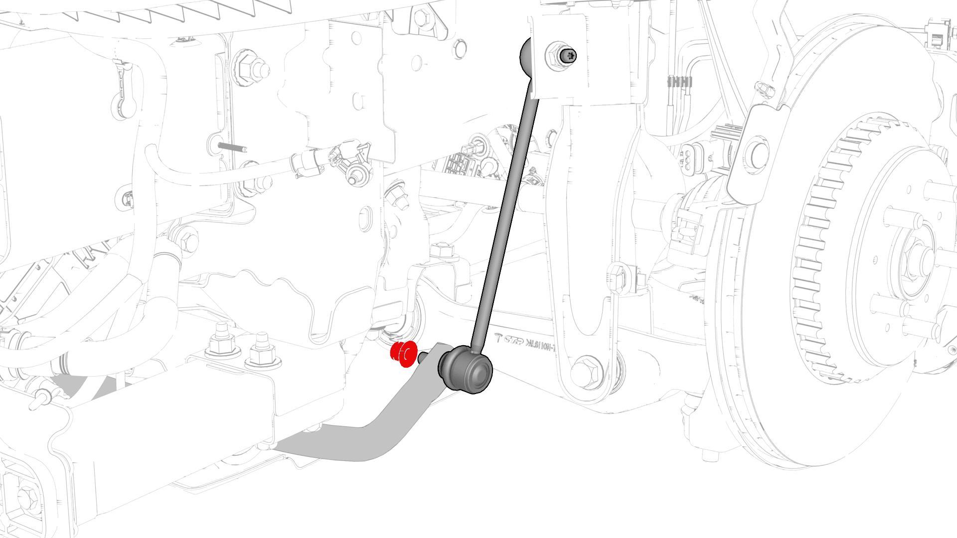 - 用手拧紧 RH 前下部横向连杆。