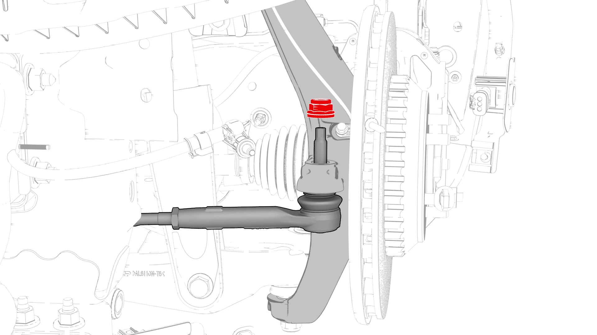 - 拆下并弃用将 LH 横拉杆球头固定到转向节的螺母。