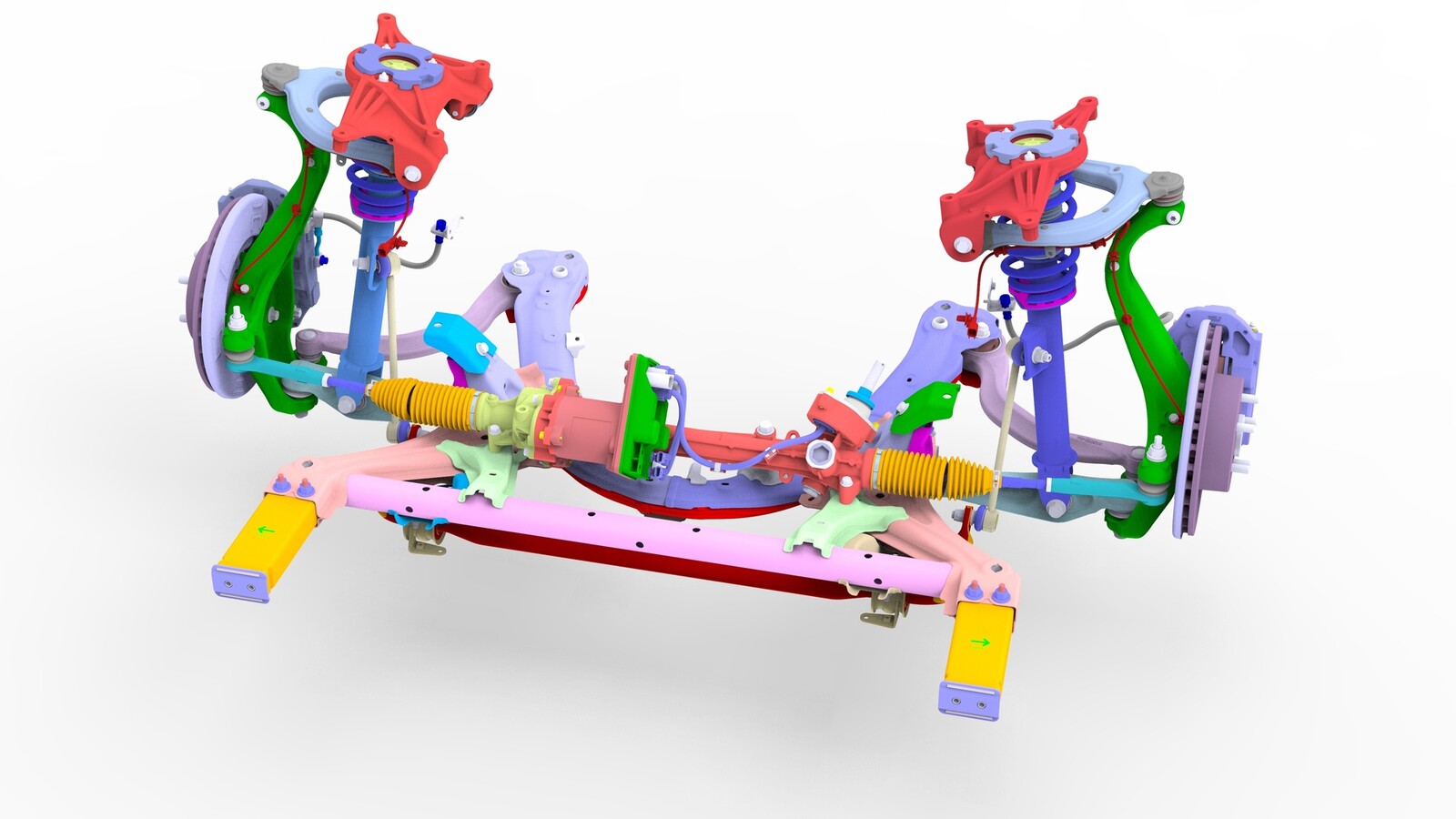 - 在助手的帮助下,从车辆上降下前副框架。